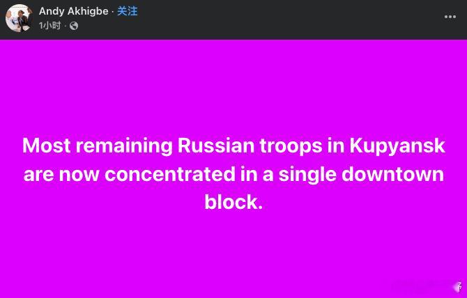 乌克兰哈尔科夫库皮扬斯克,离俄乌边境不算远,开车可能一个来小时,那里现存的俄军部队,已全部集中在市中心的一个街区,他们在等着被围剿,可能想投降。俄罗斯已经反复声称占领了乌克兰库皮扬斯克,并对相关人员进行了嘉奖,现在似乎有点尴尬。这不是最尴尬的,最尬的是俄罗斯早就通过更改俄罗斯法律的形式说乌克兰卢甘斯克,顿涅茨克,扎波罗热,赫尔森全是俄罗斯的土地。但是呢,俄罗斯如果不再耗至少几百万人进去,休想全占领那些地方,这是俄罗斯最大的尴尬,进退两难,深陷泥潭。