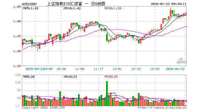 1月22日,上证指数ETF汇添富(510980)开盘跌0.07%,报1.425元。上证指数ETF汇添富(510980)重仓股方面,农业银行开盘跌0.86%,贵州茅台涨0.07%,中国银行涨0.00%,中国石油涨0.80%,工业富联涨0.21%,招商银行涨0.08%,中国人寿涨0.58%,长江电力涨0.00%,寒武纪跌0.73%,中国神华涨0.05%。