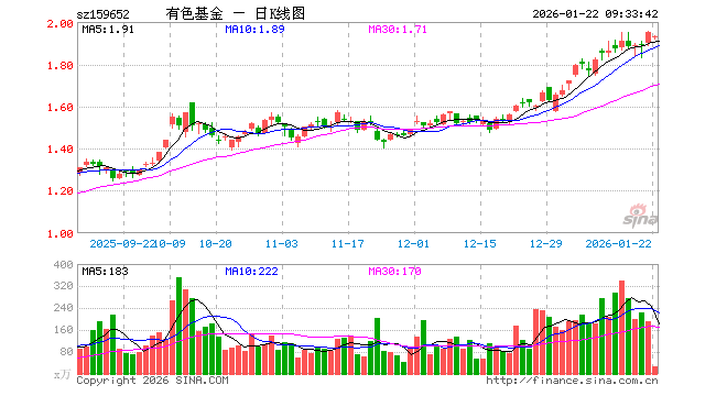1月22日,有色50ETF(159652)开盘跌1.08%,报1.929元。有色50ETF(159652)重仓股方面,紫金矿业开盘跌1.65%,北方稀土跌0.02%,洛阳钼业跌0.22%,华友钴业涨0.26%,山东黄金跌4.02%,赣锋锂业涨0.63%,中国铝业涨0.00%,中金黄金跌3.68%,赤峰黄金跌4.01%,天齐锂业涨0.63%。