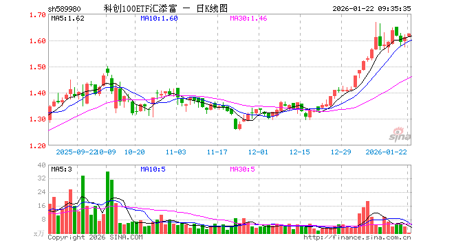 科创100ETF汇添富(589980)业绩比较基准为上证科创板100指数收益率,管理人为汇添富基金管理股份有限公司,基金经理为罗昊,成立(2025-04-25)以来回报为61.16%,近一个月回报为20.79%。