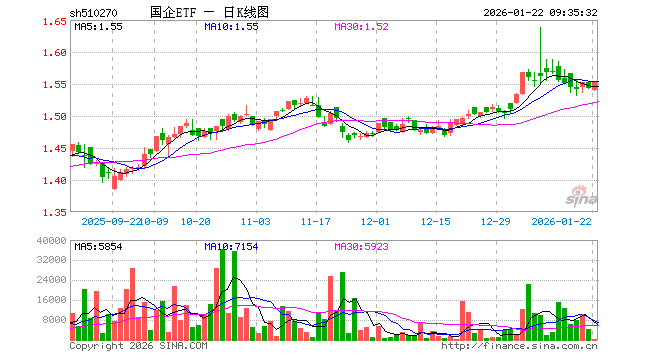 1月22日,国企ETF(510270)开盘跌0.19%,报1.540元。国企ETF(510270)重仓股方面,贵州茅台开盘涨0.07%,紫金矿业跌1.65%,长江电力涨0.00%,中信证券跌0.14%,招商银行涨0.08%,国泰海通涨0.20%,兴业银行涨0.31%,工商银行涨0.00%,中国神华涨0.05%,中国太保涨0.11%。