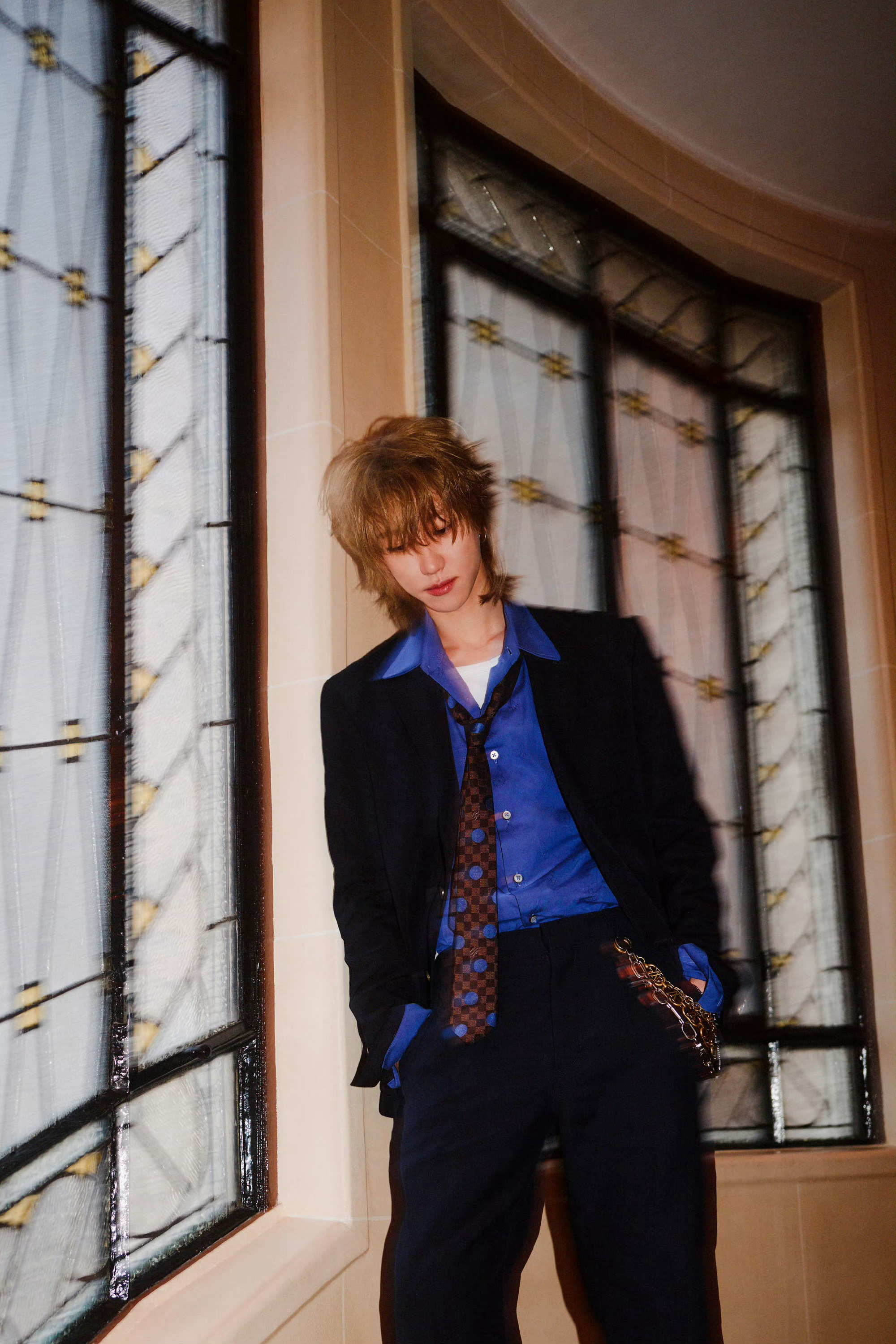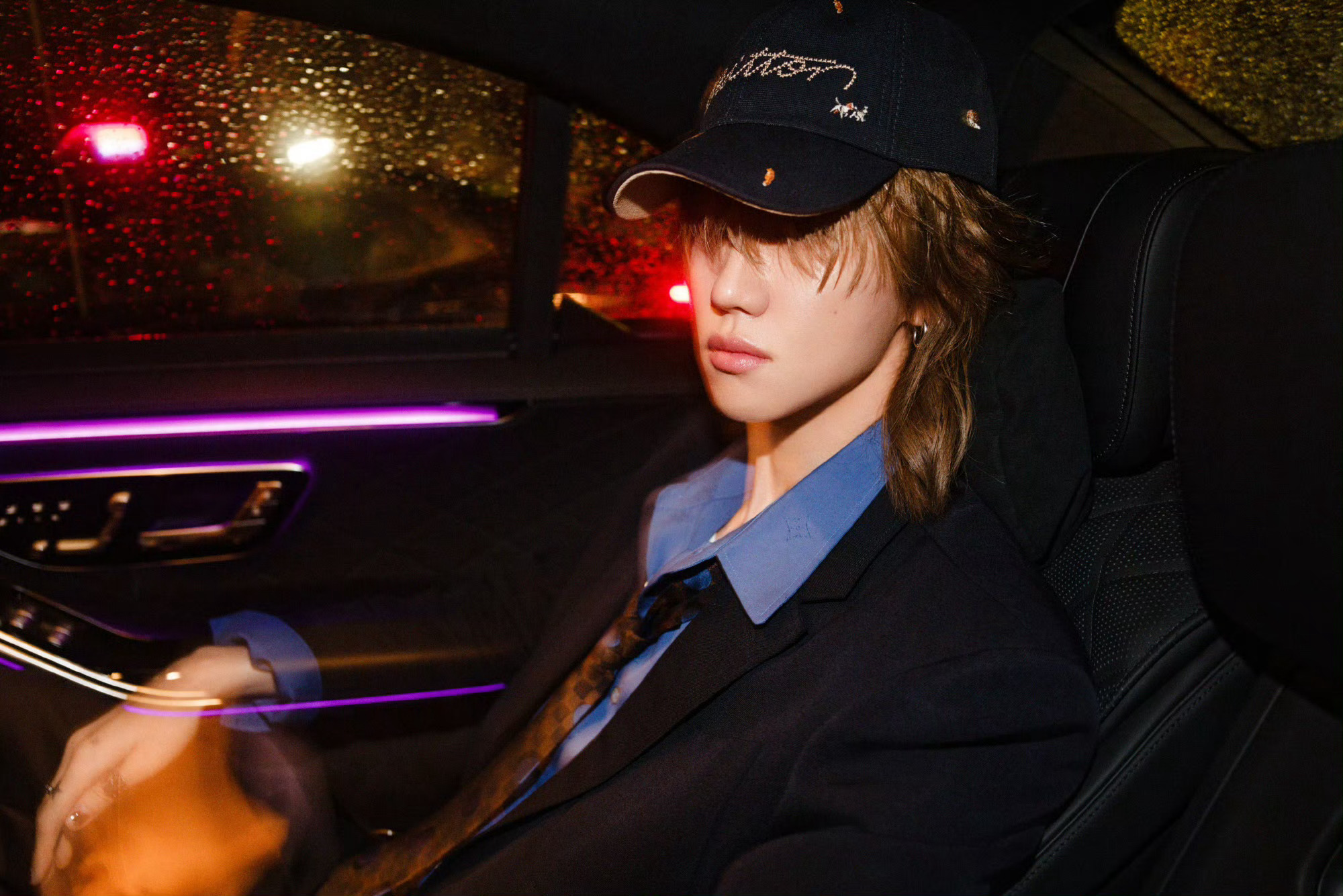 徐明浩身着 𝗟𝗼𝘂𝗶𝘀 𝗩𝘂𝗶𝘁𝘁𝗼𝗻 出席巴黎男装周,雨夜中的迷离光影下,尽显随性不羁的潇洒风范。LV大秀男装周巴黎男装周