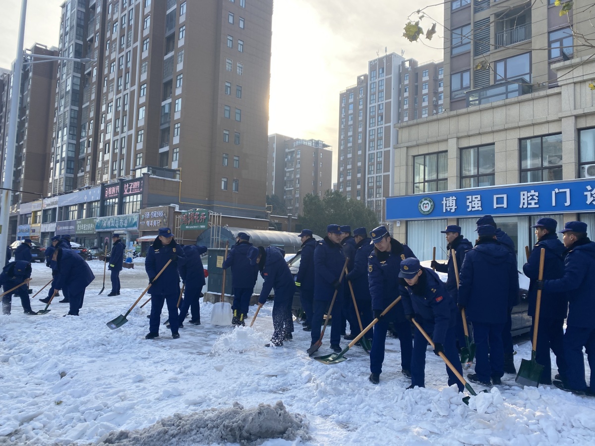 作业现场,消防救援人员不畏严寒、干劲十足,大家弯腰挥铲、默契配合,有的用铁锹铲除厚实积雪,有的用扫帚清扫残留浮雪,有的重点清理人行道边缘、路口转角等易滑区域的薄冰,不放过任何一处安全隐患,用实际行动诠释着“人民消防为人民”的宗旨。