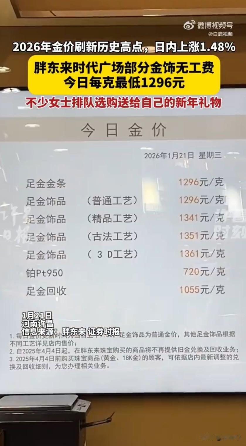 胖东来金饰每克便宜200元,市民排队疯抢,金价暴涨下它成了清流! 最近国际金价彻底火出圈,现货黄金直接冲上了4800美元/盎司的历史新高,这波涨价潮也火速传到了国内,各大金店的足金价格跟着一路飙升,贵到不少想入手黄金的人直呼下不去手。像咱们熟悉的周大福,足金饰品一克标价1498元,周生生也卖到了1495元一克,中国黄金更夸张,直接飙到了1506元一克,随便买个小吊坠都要多花好几百,大家看着金价只能望而却步。 就在大家对着高价金价望而却步的时候,河南许昌胖东来的金饰价格直接杀疯了,堪称黄金市场的一股清流。同样是足金饰品,胖东来时代广场的部分款式不仅没有额外的工艺费,每克最低才1296元,算下来比周大福、周生生这些大品牌足足便宜了200元左右,这差价一下子就戳中了消费者的心巴。 消息一出,胖东来的黄金柜台直接被挤爆,不少女士早早就在柜台前排起长队,都是冲着这高性价比的金饰来的,大家都想着选一件当作送给自己的新年礼物,既讨了好彩头又划算。有人边排队边和同伴念叨,之前看别的品牌一克贵两百,买个小吊坠都要多花大几百,这下在胖东来买,省下的钱都能再添个小配饰了。 可能有人会疑惑,为啥全网金价都在涨,就胖东来能做到低价还免工费。其实这背后全是实打实的诚意,胖东来不走品牌溢价的路子,直接对接黄金源头拿货,还自建了加工车间,一刀砍掉了中间商的层层加价,没有了中间环节的额外成本,价格自然能降下来。而且它不像别的金店那样,靠高额工艺费赚差价,普通款式直接免工费,就算是工艺复杂的款式,收费也特别实在,明码标价不玩任何套路。 这边胖东来卖得热火朝天,另一边国内金饰价格又迎来小波动,克价一夜之间跌了3元,部分品牌的足金价格跌到了1492元一克,但就算这样,和胖东来1296元的价格比起来,还是差了快200元,根本没法比。大家都说,胖东来这才是真正站在消费者角度做事,不趁金价暴涨跟风收割,反而把实惠实实在在让给大家。 排队的人群里,有给自己挑本命年金饰的阿姨,也有给闺蜜选新年礼物的小姐姐,还有人专门从外地赶来,就为了在胖东来选几件心仪的金饰。有人拿着刚选好的金镯子笑得合不拢嘴,说这价格买得太值了,既体面又省钱。毕竟在金价居高不下的当下,能以这么划算的价格买到无工费足金,简直是捡到大便宜,也难怪大家都心甘情愿花时间排队,只为把这份新年的“金”喜带回家。足金金饰价格 金饰行情 足金金饰价格 胖东来珠宝 来源:许昌时刻