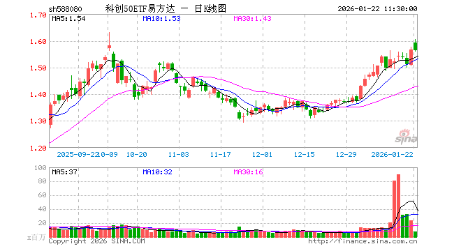 1月22日,截止午间收盘,科创50ETF易方达(588080)跌0.19%,报1.562元,成交额11.75亿元。科创50ETF易方达(588080)重仓股方面,中芯国际截止午盘跌1.24%,海光信息跌0.89%,寒武纪跌0.24%,澜起科技涨3.90%,中微公司跌3.93%,联影医疗涨0.05%,金山办公涨3.04%,芯原股份跌0.12%,石头科技跌1.55%,传音控股涨0.36%。