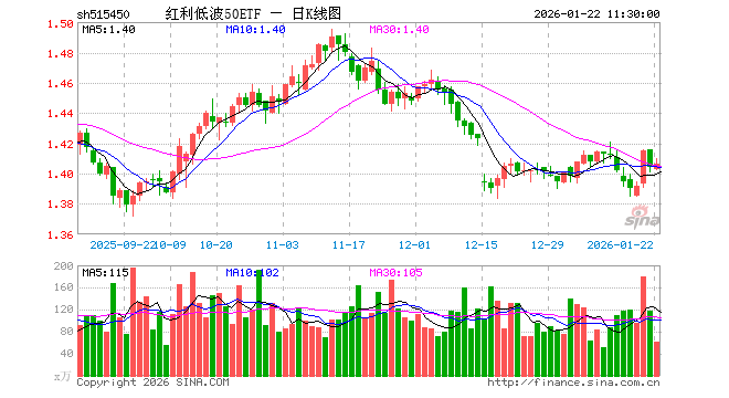 1月22日,截止午间收盘,红利低波50ETF(515450)涨0.14%,报1.406元,成交额8617.45万元。红利低波50ETF(515450)重仓股方面,养元饮品截止午盘跌1.51%,洋河股份涨1.00%,中国外运涨0.86%,雅戈尔涨1.09%,陕西煤业涨1.77%,格力电器涨0.17%,双汇发展跌0.04%,中国神华涨1.17%,梅花生物涨0.56%,申能股份涨0.48%。