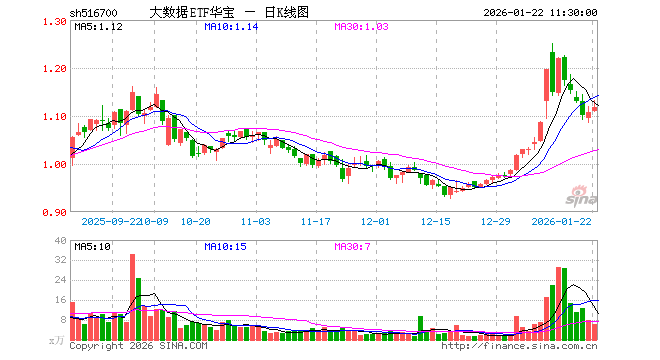1月22日,截止午间收盘,大数据产业ETF(516700)涨0.99%,报1.118元,成交额720.33万元。大数据产业ETF(516700)重仓股方面,中科曙光截止午盘跌1.57%,科大讯飞涨0.34%,浪潮信息跌1.15%,紫光股份跌0.45%,恒生电子涨0.06%,拓维信息涨0.09%,润泽科技涨2.94%,中国长城涨6.79%,用友网络涨4.11%,深信服涨10.21%。