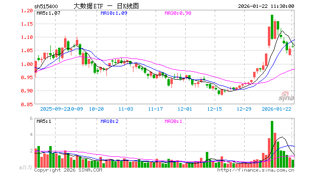 1月22日,截止午间收盘,大数据ETF(515400)涨0.85%,报1.064元,成交额9183.28万元。大数据ETF(515400)重仓股方面,中科曙光截止午盘跌1.57%,科大讯飞涨0.34%,浪潮信息跌1.15%,紫光股份跌0.45%,恒生电子涨0.06%,拓维信息涨0.09%,润泽科技涨2.94%,中国长城涨6.79%,用友网络涨4.11%,深信服涨10.21%。