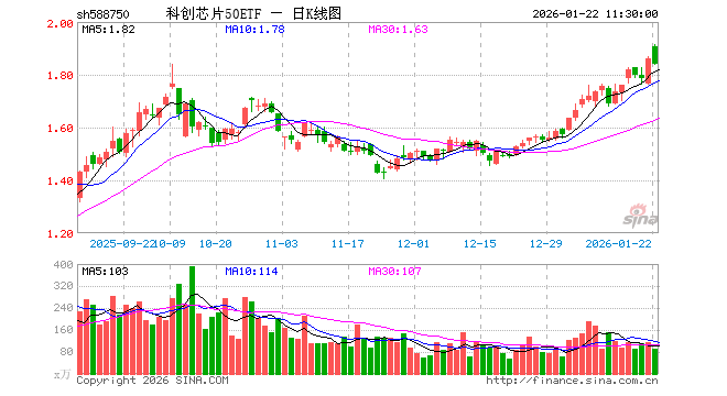 1月22日,截止午间收盘,科创芯片50ETF(588750)跌1.07%,报1.841元,成交额1.67亿元。科创芯片50ETF(588750)重仓股方面,海光信息截止午盘跌0.89%,澜起科技涨3.90%,中芯国际跌1.24%,寒武纪跌0.24%,中微公司跌3.93%,芯原股份跌0.12%,华虹公司跌0.25%,沪硅产业跌2.60%,华海清科涨1.85%,晶晨股份跌6.21%。