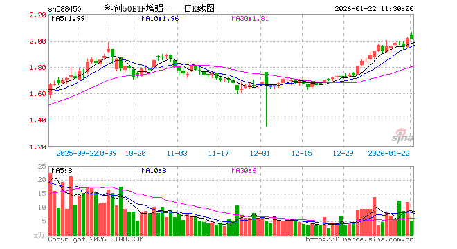 1月22日,截止午间收盘,科创50ETF增强(588450)跌0.20%,报2.011元,成交额999.08万元。科创50ETF增强(588450)重仓股方面,中芯国际截止午盘跌1.24%,海光信息跌0.89%,中微公司跌3.93%,澜起科技涨3.90%,寒武纪跌0.24%,金山办公涨3.04%,联影医疗涨0.05%,晶合集成跌3.77%,中控技术涨0.04%,佰维存储跌0.79%。