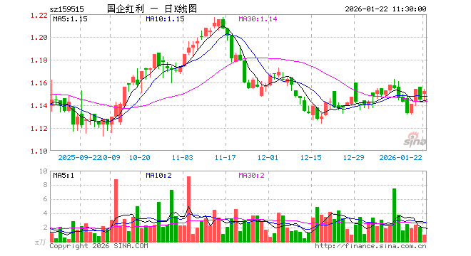 国企红利ETF(159515)业绩比较基准为中证国有企业红利指数收益率,管理人为鹏扬基金管理有限公司,基金经理为施红俊、王凯,成立(2023-08-25)以来回报为14.56%,近一个月回报为0.31%。