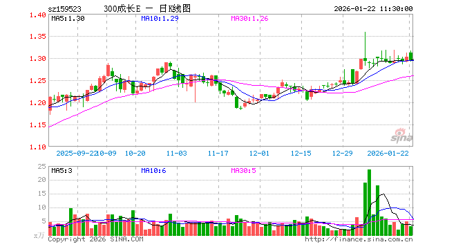 1月22日,截止午间收盘,沪深300成长ETF华夏(159523)跌0.69%,报1.293元,成交额413.18万元。沪深300成长ETF华夏(159523)重仓股方面,宁德时代截止午盘跌2.80%,贵州茅台跌0.30%,澜起科技涨3.90%,紫金矿业跌2.31%,中国平安跌1.47%,海光信息跌0.89%,兴业银行跌1.27%,阳光电源跌1.16%,长江电力跌0.71%,恒瑞医药跌1.21%。