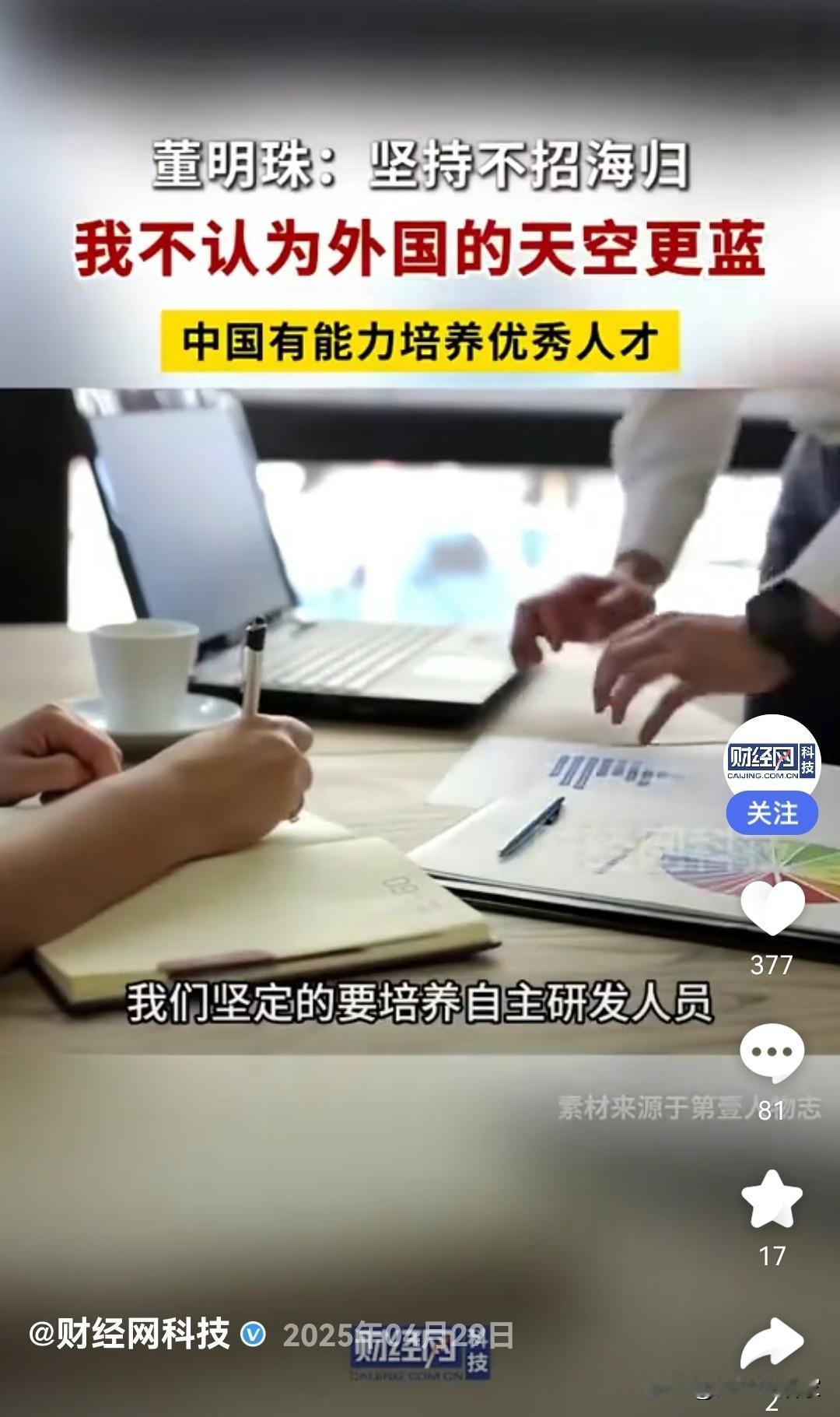 不得不说董明珠高瞻远瞩。 现在看看格力不用海归派的理念含金量越来越高。 出国