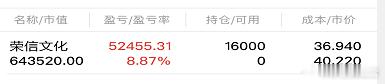 漂亮早盘关注叫大家关注的 $荣信文化 sz301231$ 现在盘中强势拉升 ,跟