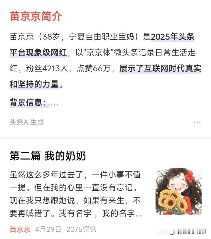 写微头条可以不用在意数量,但一定要注意最重要的一点。 这几天我翻看了好几个头条大咖写的微头条,就拿苗京京和素老三来说,她俩每天写的微头条不算太多,一天也就写个七八条。 多也没超过十个微头条,虽然苗京京她们写的微头条不算多,可收益并没有减少,反而倒是很稳定,偶尔还能多个几十。 而且素老三和苗京京写的那些微头条,每条的阅读量并不算高,所有微头条的阅读量加起来差不多能有三五万,可她们收益却有好几百。 那她们是怎么做到的呢,这里面的门道太多了,就拿她俩的认证头衔来说,无论新锐创作者还是领航创作者,只要通过了认证,那就比普通创作者有更高的单价。 头号创作者激励计划 再加上愿意去看素老三和苗京京的文章的条友,每天都有不少人,这样的用户阅读黏度也能提高她俩的阅读单价,哪怕阅读量看着不多,但收益却很多。 这就起摸透了其中的门道,比起其他人埋头苦写,苗京京和素老三才是明白人。