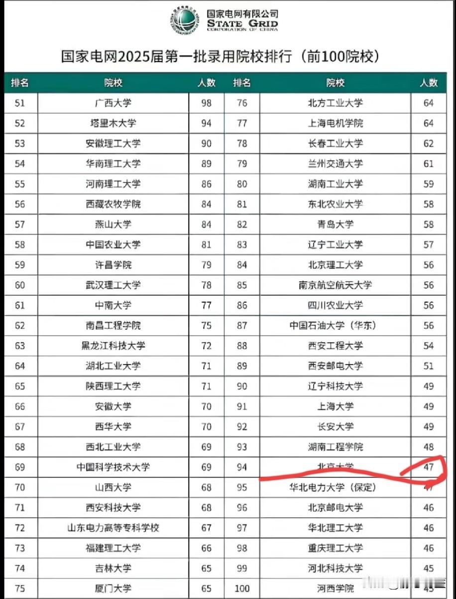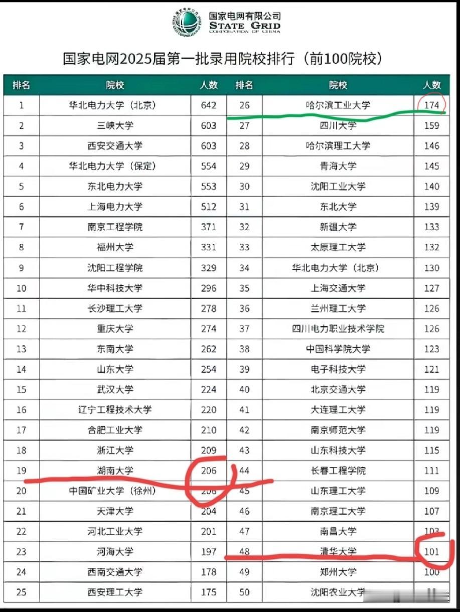 名校毕业生进电网人数激增 最新的2026国网一批录取院校人数排行榜整理出来了,拿走不谢。 以湖南大学、哈工大、清华大学、北京大学为例,与2025年相比,这些大学毕业生进入国网人数激增! 不是说电网比大厂好,而是反映了一个整体经济不振、就业环境严峻的事实,名校生放下身段抢普通生的工作,张**"高考650分以上的名校生进电网亏了"的观点受到冲击。 湖南大学今年228人,去年206人; 哈尔滨工业大学今年223,去年174; 清华大学今年125,去年101; 北京大学今年63,去年47, 可以看到增幅不小。 往前推四五年,湖南大学不上100,清北进不了排行榜。 电网院校 电网招考 考电网 电网院校指南 研究生考电网 电力院校解密 国网校园招聘
