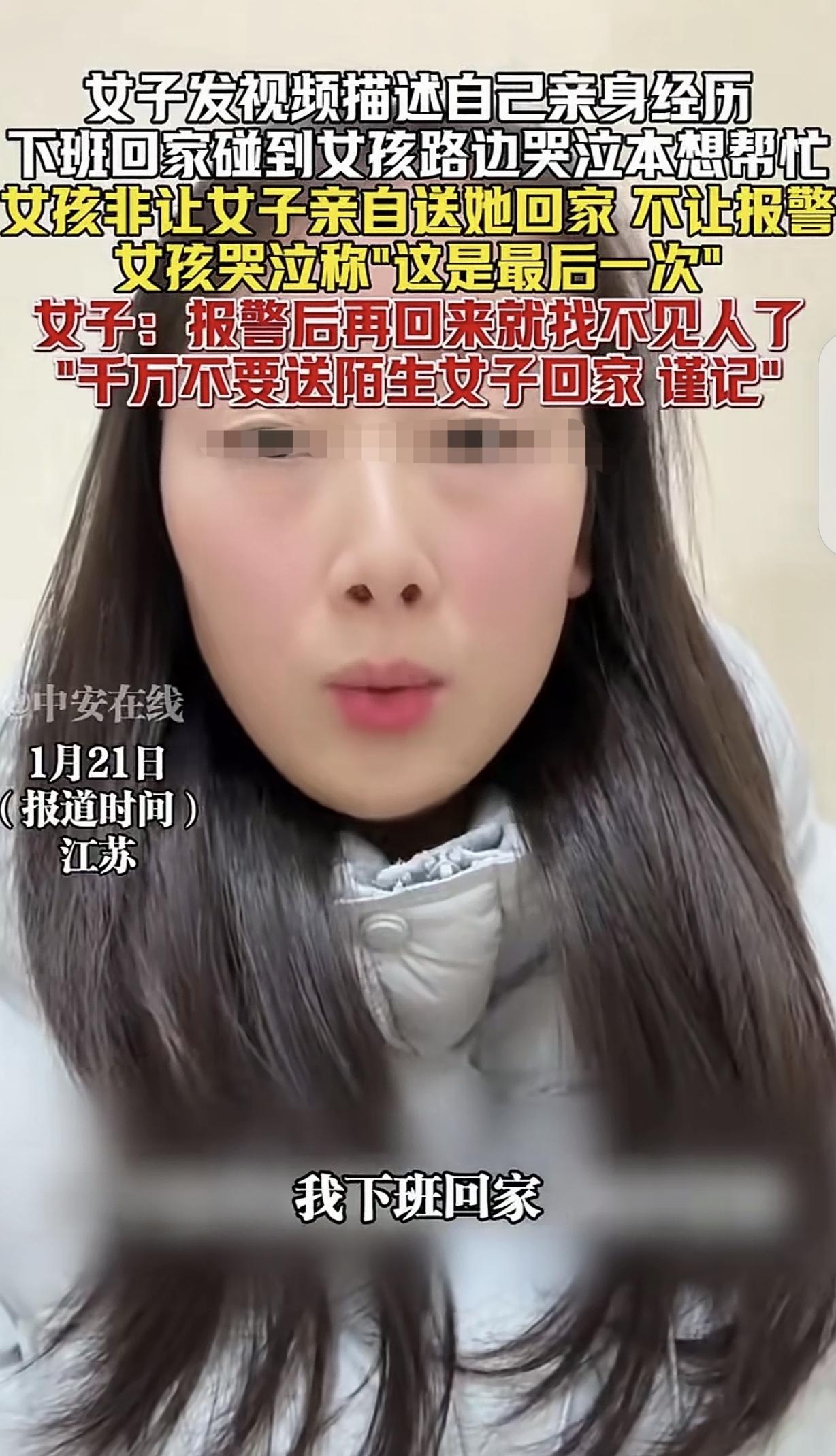“想想都后怕!”江苏,一女子晚上9点多下班,遇到一女孩趴在路边绿化带哭,女子想帮忙,女孩却让女子骑电动车亲自送她回家,不让报警,也不让叫车,女孩哭着对女子说:这是最后一次!女子听了心里咯噔一下,赶紧报了警,可等她报警后再回来,却找不到人了,前后也就10几秒,女子不觉脊背发凉。 一女子晚上加班,结束后已经9点多了,她骑着电动车,肚子里早已饥肠辘辘,她归心似箭往家赶。 突然,路边传来一女孩的哭声,女子定睛一看,一女孩,大概20岁左右,坐在路边的草坪上,哭的鼻涕一把泪一把。 女子的心顿时一软,也不知道女孩遇到了什么过不去的坎,或者是被人欺负了?或者是和父母闹了矛盾跑出来了? 这大晚上的,天气还这么冷,看她一个人哭的这么伤心,女子做不到视而不见,她停下电动车,上前问女孩怎么了?要不要帮她打个电话? 女孩一看有人关心自己,立马边哭边说:不要,我要你送我回家行不行? 女子问女孩咋了?是哪里不舒服吗?住在哪里? 女孩哽咽着说,她要回家,问女子能送她回家吗?但并不回答女子的问话。 说实话,这么晚了,女子能做的,要么就是给女孩打个报警电话,或者帮她打个车回家,如果让自己亲自送女孩回家,她内心是拒绝的,一是太晚了,二是女孩是个陌生人,她可以力所能及的去帮,但防人之心不可无,否则人心难测。 女子提出,要给女孩打个报警电话,没想到,女孩当即斩钉截铁拒绝了,还是要求女子送她回家,还说了她的住址。 女子又问女孩,给她打个车好不好?女孩又毫不犹豫的拒绝了,她执意要求女子亲自送自己回家,既不让她报警,也不让她打车,而且说着,竟然把手伸向女子,有些急不可耐。 此时,女子心里已经悬了起来,她觉得这个女孩不简单,她拒绝其他帮助,不停哀求自己送她回家,到底有何目的? 女子又说要帮女孩打电话报警,女孩再次拒绝,而且明显有些慌乱,她不停的说着:求你了,送我回家!紧接着,女孩脱口说出一句话:这是最后一次! 难道,女孩不止一次这样做过?她被什么人操控了?出来做诱饵,然后迷惑那些心地善良的人,一步步走进他们的圈套? 女子想到这里,脊背发凉,但她还是做不到扬长而去,万一自己多心了,女孩大晚上的在外面不安全,她告诉女孩,她不敢送她回家,决定跑到一边打电话报警。 可她报警后,前后也就10几秒钟的时间,等她回来后,发现女孩不见了,她想想都后怕! 女孩路边哭着求送回家,不让报警不让叫车,细思极恐!女子果断报警的做法太明智,热心肠要带护身符,陌生人求助多留个心眼,安全永远是第一位。 每个人都有自己要背负的命运。不要掺和别人的命运,不要老是当自己是救世主。 真有事都没人管了,消费人们的善良!全归咎大家是冷漠 !见到这样的任何行为,让他们付出代价! 这女子做的对,我们不能释放了我们的善心,我们的善意,最终得到的是一个陷阱。在不知道的情况下,报警是对的,不直接送她回家也是对的,为啥一个电话报警电话她就消失了?这问题还真的蛮严重的。 这事儿得给咱提个醒儿!晚上路上碰着哭哭啼啼求帮忙的,别光顾着心软,脑子得绷根弦! 你看这个女子,好心停下问两句,结果对方死活不让报警、不叫车,非要她亲自送回家,还说什么“这是最后一次”。 这哪是求助啊?分明像提前背好的台词!更吓人的是,姑娘刚转身报警,人“嗖”一下就没了,前后不过十几秒,细想后背直冒冷汗! 现在坏人套路深,专挑热心肠的下手。咱不是不让帮人,但得讲究方式:先保证自己安全!真要帮忙,站远点报警、联系家人,或者找保安、路人一起帮,千万别单独行动。 善良没错,但别让善意成了坏人的工具,你以为是救人,可能正往火坑里跳! 记住:安全永远排第一!遇到可疑情况,先报警准没错!咱的善心要留给真正需要的人,可别喂了狼! 对此,你怎么看?