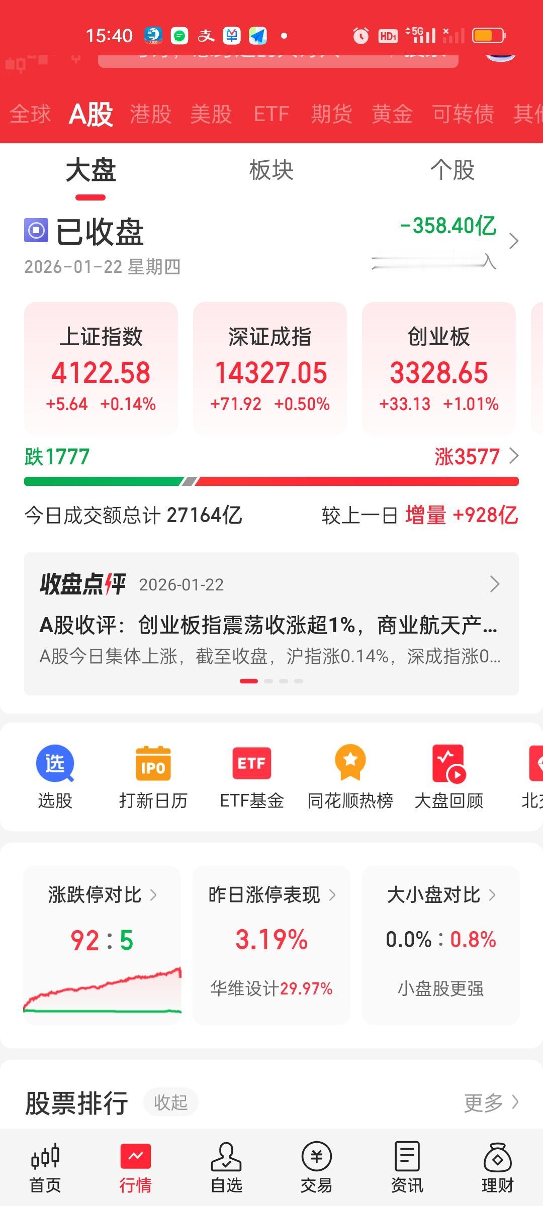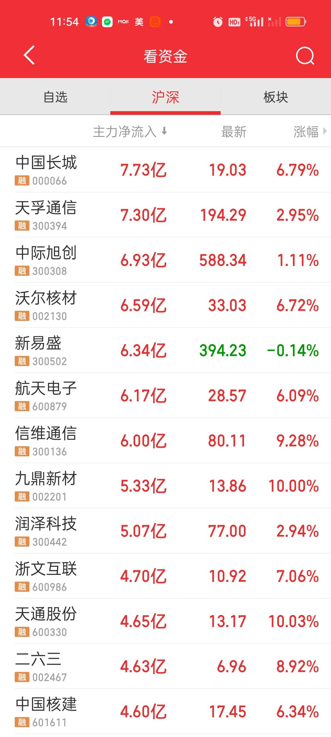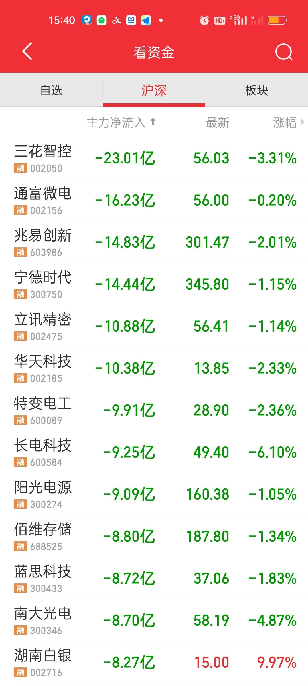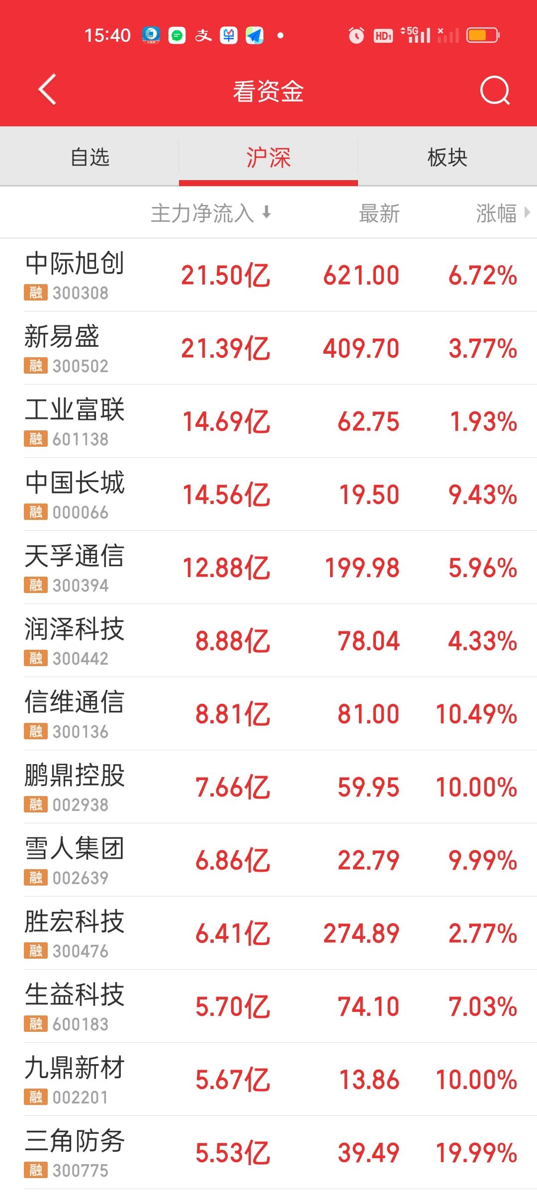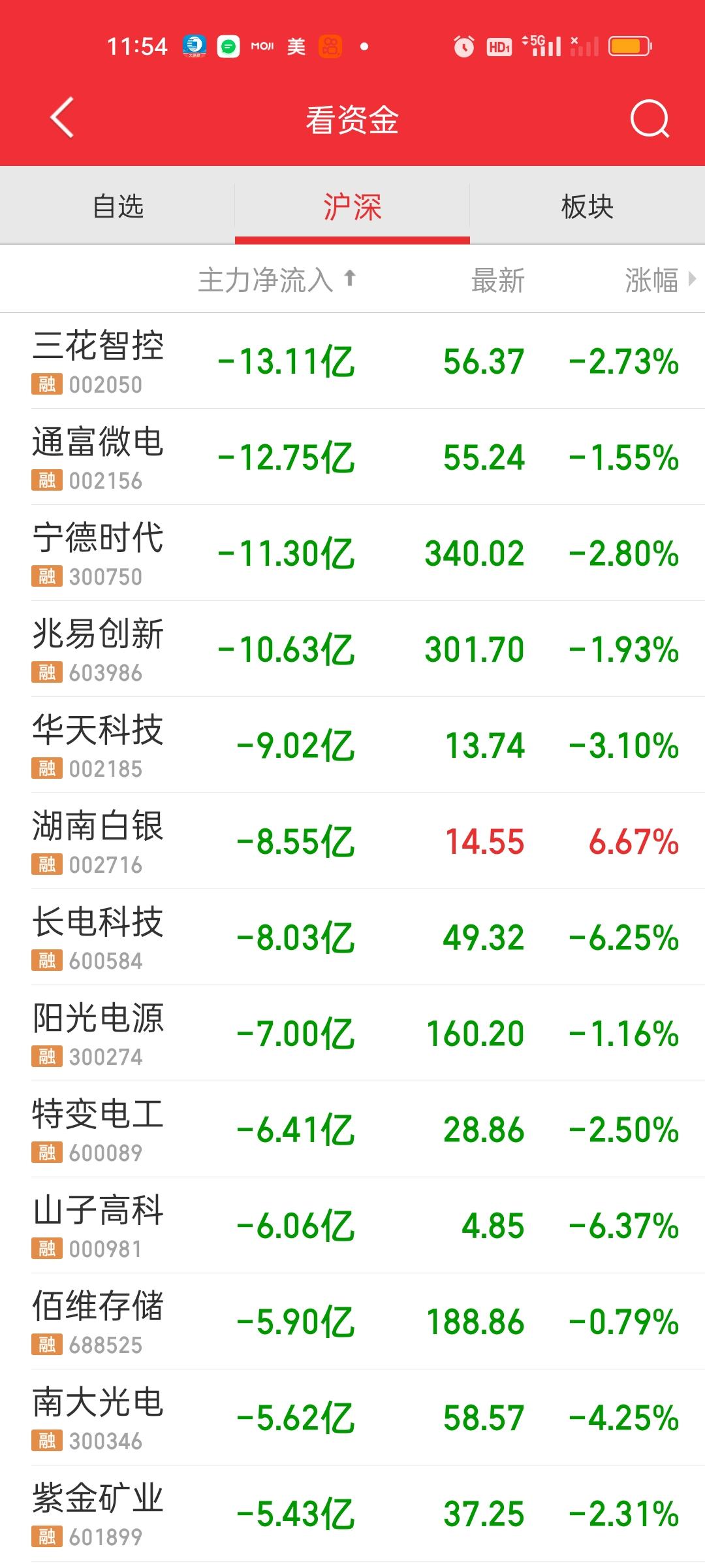 收盘了,小微盘的表现都要强于大盘股,个股有3577家上涨有92家个股涨停,涨跌停比92:5,今天赚钱效应还是非常好的。 主力资金净流入方面,上午并没有流入资金超10亿的个股。下午有5家,易中天+工业+长城。易中天的强势直接利好CPO板块,所以今天CPO涨得相当不错。 主力资金净流出方面,上午只有4家,下午增加到了6家,新增立讯精密和华天科技。其中三花智控在上午的基础上,下午又多流出了10亿。