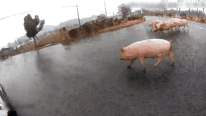 考虑到猪在道路周边乱窜