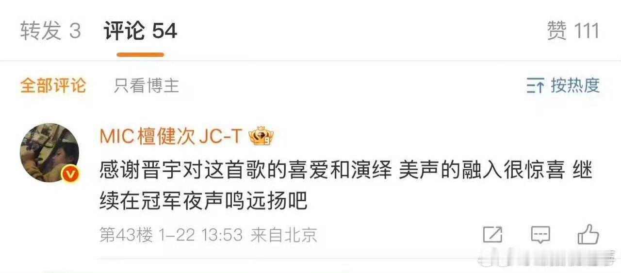 檀健次给危晋宇冠军夜加油危晋宇翻唱《蒙娜丽莎》晋级《声鸣远扬》三强,获檀健次点赞打call,完全是优秀音乐人之间的惺惺相惜啊!声鸣远扬
