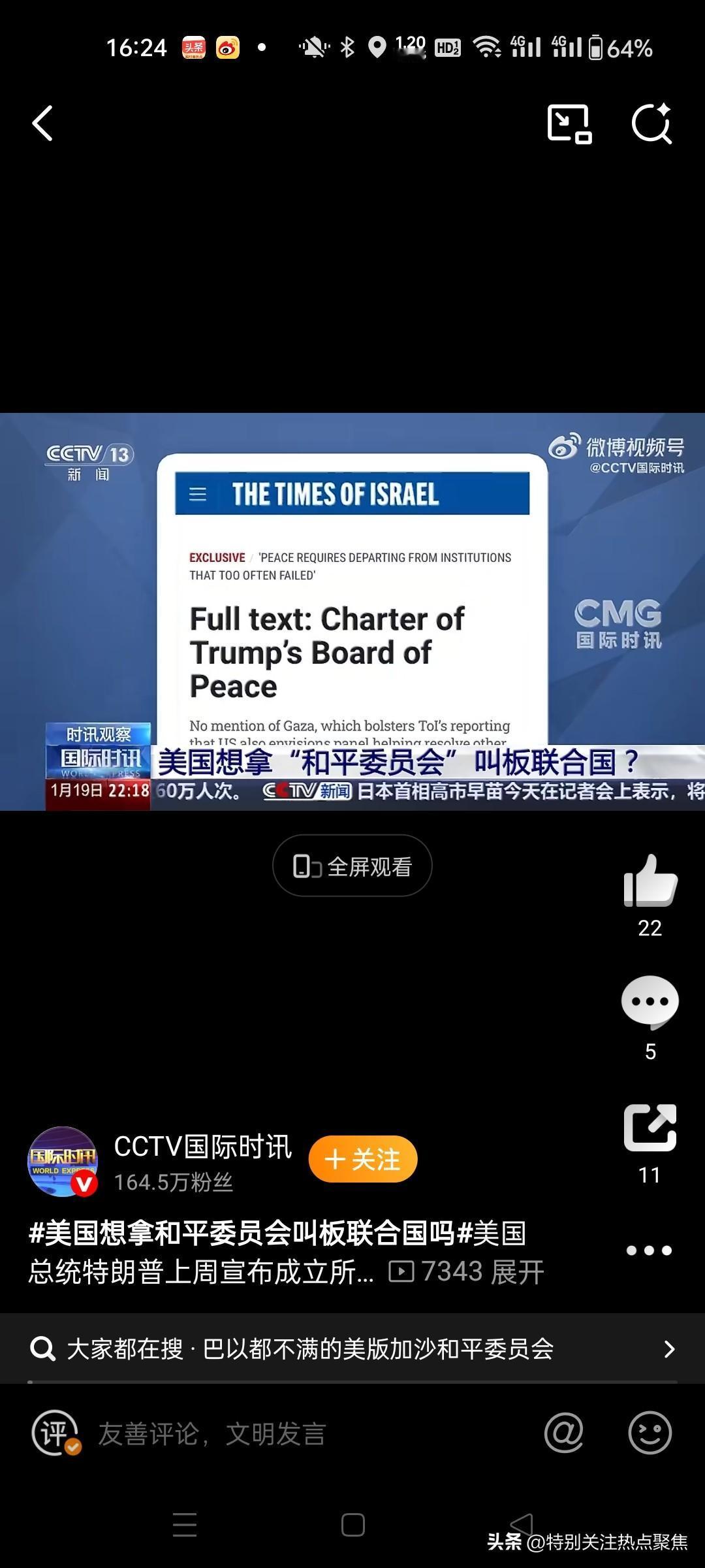 特朗普影响力不容小觑特朗普和平委员会受邀参加的50位领导人中约有35人已接受邀请。 特朗普今日在达沃斯高调举办“和平委员会”签约仪式,50位受邀领导人中约35人确认出席,但该机制的设计争议与国际社会的谨慎反应,凸显其影响力背后的复杂博弈。 一、签约仪式核心动态 时间与地点:美国总统特朗普于2026年1月22日在瑞士达沃斯世界经济论坛期间,为“和平委员会”举行签约仪式。@北京青年报1113 参与情况:受邀的约50位国家领导人中,约35人已接受邀请出席仪式。部分公开确认收到邀请的国家包括约旦、希腊、塞浦路斯、巴基斯坦、加拿大、土耳其、埃及等。@参考消息111参考消息 二、“和平委员会”的实质争议 该委员会虽以加沙和平重建为初始目标,但其运作机制引发广泛质疑: 权力高度集中: 委员会主席(特朗普)拥有最终决策批准权,所有决定需经其同意;在投票平票时,主席可直接裁决。@看看新闻Kn...8 核心成员由特朗普政府高层及其亲信(如国务卿鲁比奥、女婿库什纳)组成。4 “付费永久席位”模式: 美方提出,成员国缴纳10亿美元即可获得“永久成员资格”,否则仅为三年任期成员。该款项声称用于加沙重建。49 目标超越加沙,挑战现行秩序: 特朗普公开表示该委员会未来将处理“其他冲突”,并宣称其“可能取代联合国”。@CCTV国际...8 分析认为,其实质是将国家影响力转化为特朗普个人政治资产,构建由其主导的全球安全仲裁与资金体系,颠覆主权国家平等的多边主义规则。@新华网46新华网CCTV国际时讯 三、国际社会的反应:响应有限,质疑众多 尽管有部分国家受邀,但整体反应消极: 多国持观望或批评态度: 欧洲多国提出质疑,以色列公开批评,导致该计划在达沃斯推进受阻。@CCTV4 大多数受邀国态度“谨慎”,选择继续观望。69 中方立场明确但未置评参与: 中方确认已收到美方邀请,但在仪式前夕及当日记者会上,外交部发言人郭嘉昆连续多次表示,“关于‘和平委员会’的问题,我们已经做了回答,目前没有可以补充的信息”,未透露中方是否参与签约。@中国青年报110 四、影响力背后的关键动因 特朗普推动该计划的主要支撑点在于其宣称的“行动力”与“关键人物影响力”: 实用主义逻辑:特朗普回应外界对其邀请争议人物(如俄罗斯总统普京)的质疑时强调,“这些人是可以做事的人,是有很大影响力的人”。@澎湃新闻 自我定位:在重返白宫一周年之际,特朗普高调宣扬自身政绩,为该机制造势。15 综合来看,达沃斯签约仪式虽展示了特朗普动员部分国际力量的能力,但“和平委员会”高度利己的设计架构、模糊的长期目标以及多国的保留态度,揭示了其所谓“影响力”面临的结构性挑战和国际共识的缺失。