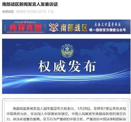 一点活路也不走! 菲律宾公然挑衅中国主权!南部战区新闻发言人发表谈话:1月20日,菲律宾1架公务机未经中国政府允许,非法闯入中国黄岩岛领空。中国人民解放军南部战区组织海空兵力,依法依规警告驱离。 谁都清楚,黄岩岛是中国固有领土,不是菲方想抢就能抢的。 1月20日这事儿,南部战区直接放话了:菲律宾一架公务机没经过中国政府批准,就硬闯黄岩岛领空。中国人民解放军南部战区调了海空部队,按照规矩警告驱离。发言人田军里空军大校把话说得清清楚楚,黄岩岛是中国固有领土,菲方这行为严重侵犯中国主权,还违反了中国法律和国际法相关规定。正告菲方马上停手,别再搞侵权挑衅,也别再到处乱炒作。 黄岩岛这地方,从历史上到法理上,都是中国的,谁都清楚。菲方这些年老在这上面折腾,先是仁爱礁军舰坐滩,拿“技术故障”当借口赖着不走,本来说好拖走,结果一拖再拖,还偷偷加固,想长期占着。现在又把手伸到黄岩岛,从船只骚扰到飞机闯入,一步步试探底线。说白了,就是想通过不断挑事,制造既成事实,给自己的非法主张找存在感。 菲方敢这么干,底气主要来自外部。美日那边给撑腰,表面上叫“援助”“合作”,实际上就是把菲律宾当棋子,用来牵制中国。菲律宾现政府这套玩法,两面派得很明显。一边对中国大使说要保持友好,承认一个中国政策,说南海问题不是中菲关系的全部;另一边背地里频频搞动作,军机船只轮番上阵。这种当面一套背后一套的操作,暴露了政治上的短视和投机,以为能两头通吃,结果很可能两头都落空。 中国这边态度一直很明确:通过对话协商解决争议,但前提是对方得停止挑衅,尊重主权。南部战区这次行动就是信号,克制不等于软弱,警告驱离是依法依规,专业又坚决。要是菲方再越线,下一步就不会只是无线电喊话那么简单。中国军队在南海的巡逻、警戒、维权行动一直没停过,海空力量常态化部署,雷达监控全覆盖,任何异常都能快速反应。 菲方这些举动,说到底损害的是自己。南海稳定直接关系菲律宾的经济民生,中国是菲律宾最大的贸易伙伴之一,经贸往来实打实给菲律宾带来实惠。为了迎合外部势力,牺牲掉这些利益,换来的是地区局势紧张,自己老百姓日子不好过。这种买卖,正常人算算账都不会干。 菲方老拿“专属经济区”说事儿,其实是偷换概念。陆地支配海洋是基本原则,岛礁主权都不是你的,谈什么专属经济区?2016年那个仲裁案,菲方老挂在嘴边,但中国从一开始就不接受、不参与、不承认,立场没变过。国际上很多国家也清楚,南海问题不是简单的法律案子,而是涉及主权和地缘政治的复杂争端。 小马科斯政府上台后,南海动作明显加大。军舰、公务船、飞机轮番出现,频率比以前高不少。每次中方回应后,菲方媒体和官员就出来喊“中国威胁”“过度反应”,但事实摆在那儿:是谁先越界、谁先挑事,一目了然。中国军队的回应始终克制、有序、有力,没给对方任何升级借口。 现在的情况是,中国对黄岩岛的控制和主权宣示稳稳的。海警、海军、空军多部门协同,日常巡逻不断,岛礁周边海域保持高压态势。菲方要是继续抱错大腿、走错路,只会越来越被动。外部势力喊得再响,也改变不了中国在南海的实际存在和决心。历史证明,想通过代理人或者小动作侵犯中国领土主权,从来没成功过。 菲方现在最该做的,是冷静下来,回到谈判桌前。南海行为准则磋商已经谈了很多年,中国态度是积极推动,早日达成有约束力的规则。菲律宾如果真想解决问题,就该停止一切侵权行动,别再给外部势力当枪使。否则,继续这么折腾下去,吃亏的只会是自己。地区国家都想和平发展,谁也不想看到局势失控。菲方该掂量掂量,别等真碰了硬钉子,才后悔没早点回头。 中国从不主动惹事,但也绝不怕事。维护领土主权是底线,任何挑衅都会遇到坚决回应。黄岩岛是中国的,谁也抢不走。这一点,从来没变过,也不会变。