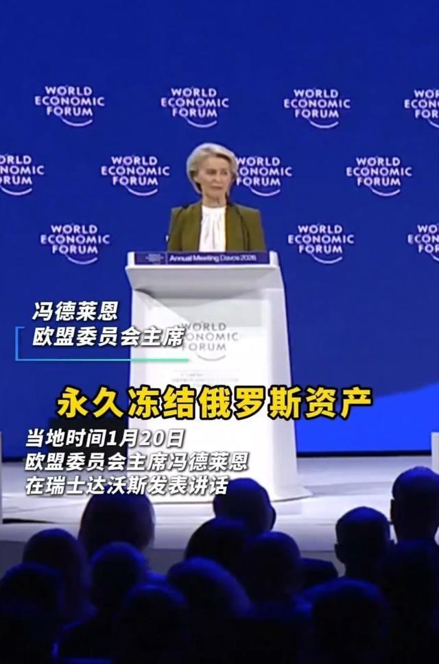 疯了!达沃斯惊现“抢钱式互撕”,冯德莱恩硬刚美俄引爆全球达沃斯论坛直接变成“神仙打架”现场,冯德莱恩当众拍板,要把俄罗斯2100亿欧元央行资产永久冻结,当成填乌克兰717亿欧元窟窿的“自动提款机” !这笔钱全由欧洲清算银行攥着,本是俄罗斯的海外储备家底,更狠的是她转头就怼特朗普。 2026年1月达沃斯世界经济论坛期间,冯德莱恩在公开场合直接把话挑明:欧盟要把冻结的俄罗斯央行资产永久锁死,大概2100亿欧元左右,这些钱主要放在欧洲清算银行手里,本来是俄罗斯的海外储备,现在欧盟说要无限期不动用,同时保留拿来支持乌克兰的可能性。欧盟之前已经批了900亿欧元贷款给乌克兰,用来覆盖2026-2027年的军援和基本运转开支,缺口算下来有几百亿欧元,冯德莱恩的意思很直白,这笔冻结的俄罗斯钱可以当成备用填坑工具。 这套说法一出口,现场就炸了。西方过去搞制裁大多是冻结资产不让动,顶多说等局势变了再解冻,这次欧盟直接升级成“永久冻结+潜在使用权”,等于把别人的家底当成了自己的提款机。俄罗斯方面当然不干,早就通过法律途径起诉欧洲清算银行要钱,还把能源结算强制改成卢布支付,欧洲不少国家天然气和石油进口直接卡壳,价格和供应都受影响。俄罗斯还修订了反制裁法,把几家欧盟企业在俄资产也冻了,双方你来我往,谁也不让步。 冯德莱恩没停在那儿,转头就把矛头对准美国。她公开说特朗普提的对欧加税想法完全站不住脚,欧盟去年跟美国签的贸易协议必须执行到底,如果美方真加关税,欧盟已经准备好价值930亿欧元左右的反制清单,针对美国商品下手,力度不会小。这话说得直白,等于告诉特朗普:你加我就还击,别以为欧洲好欺负。 欧盟内部其实早就不统一。比利时因为大部分俄罗斯资产托管在自己地盘上,担心金融中心信誉受损,一直皱眉。匈牙利和斯洛伐克公开反对动用这笔钱,觉得绕过一致同意规则硬推太冒险,容易捅破全球金融信任的底裤。核心国家还是想绕开障碍,坚持把冻结资产当成长期施压工具,哪怕不直接拿来花,也要让俄罗斯知道这钱拿不回去了。 全球金融圈看这事儿看得最清楚。过去大家把钱放欧洲觉得安全,现在欧盟自己把“私有财产不可侵犯”这条底线踩了,以后谁还敢放心把大笔外汇储备存在欧洲银行?今天能对俄罗斯这么干,明天换个不听话的国家会不会也这样?不少国家已经在悄悄把资产撤离欧洲市场,分散风险成了共识。 冯德莱恩这波操作把欧盟推到风口浪尖。一边硬扛俄罗斯,一边跟美国叫板,还得哄内部不散架。俄罗斯资产冻结到现在还没解,永久不动用的状态基本坐实,成了欧盟对俄战略的一部分。乌克兰那边拿到的900亿欧元贷款是实打实的,但利息和担保都落在欧盟全体头上,等于大家一起背锅。特朗普的关税威胁后来也没马上全面落地,双方还在谈,但跨大西洋关系明显凉了不少。 说到底,这场达沃斯发言把欧盟的算盘摊得太开:用别人的钱给自己续命,对抗俄罗斯的同时还不忘防着美国薅羊毛。结果就是全球信任进一步崩,金融规则被撕得稀碎。俄罗斯继续用能源和法律反击,欧盟内部裂痕越来越大,冯德莱恩继续当主席推她的路线,但这笔2100亿欧元的账谁也算不清最后怎么收场。现实就是这么骨感,谁也别想轻松过关。