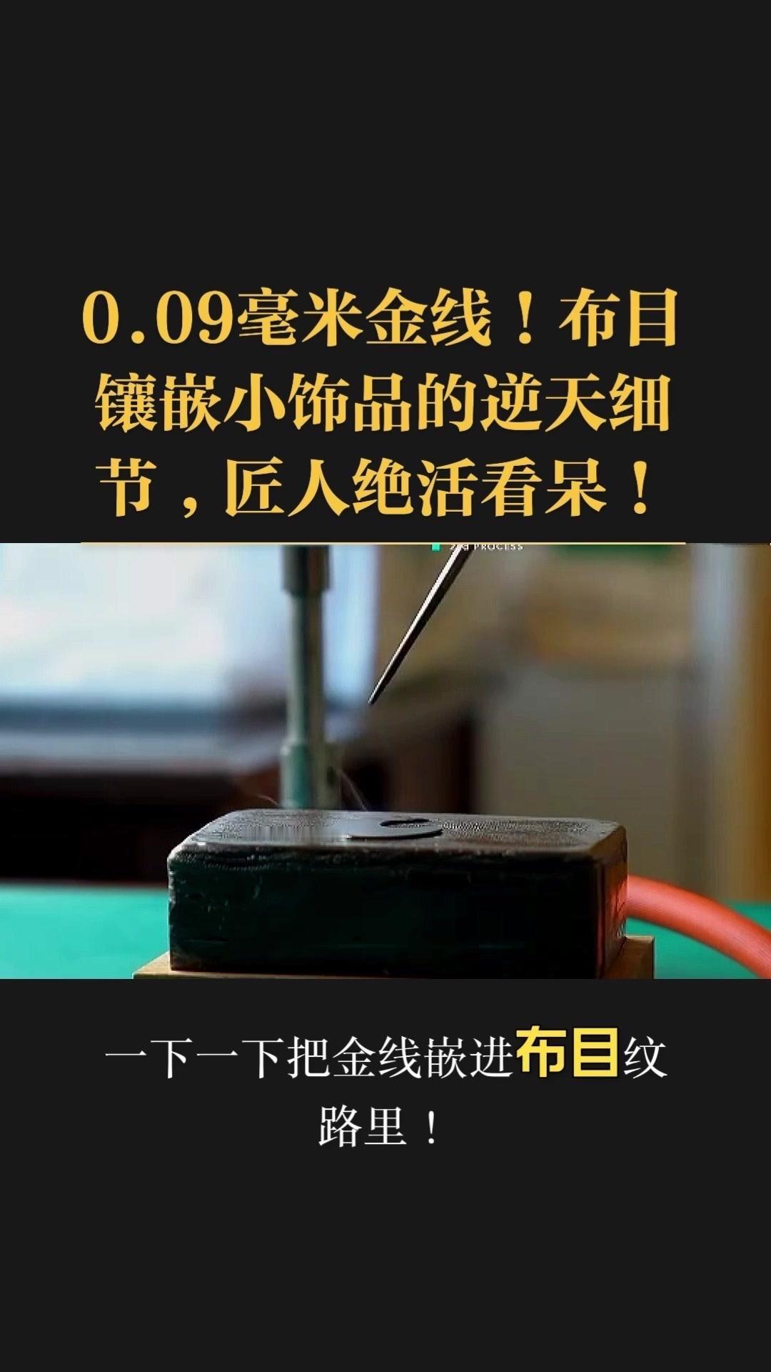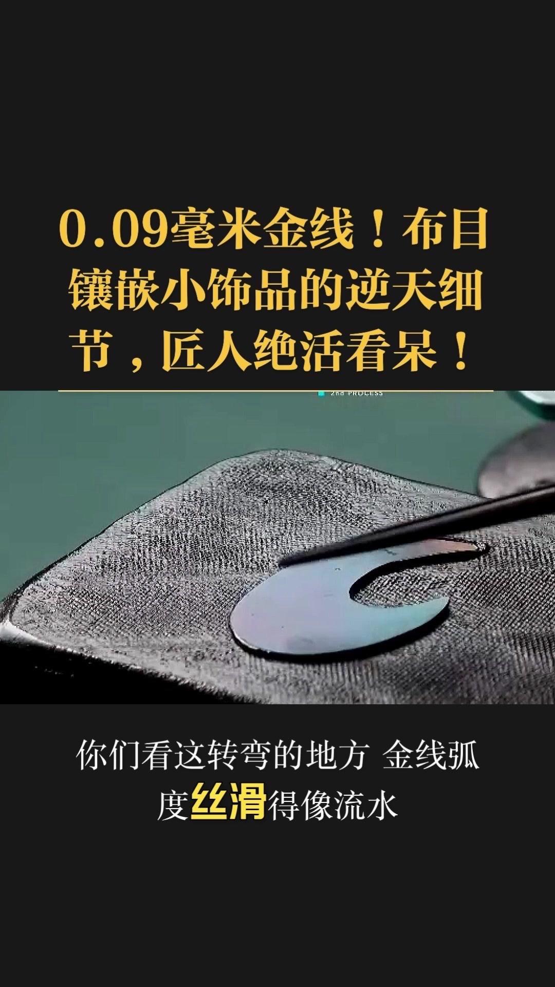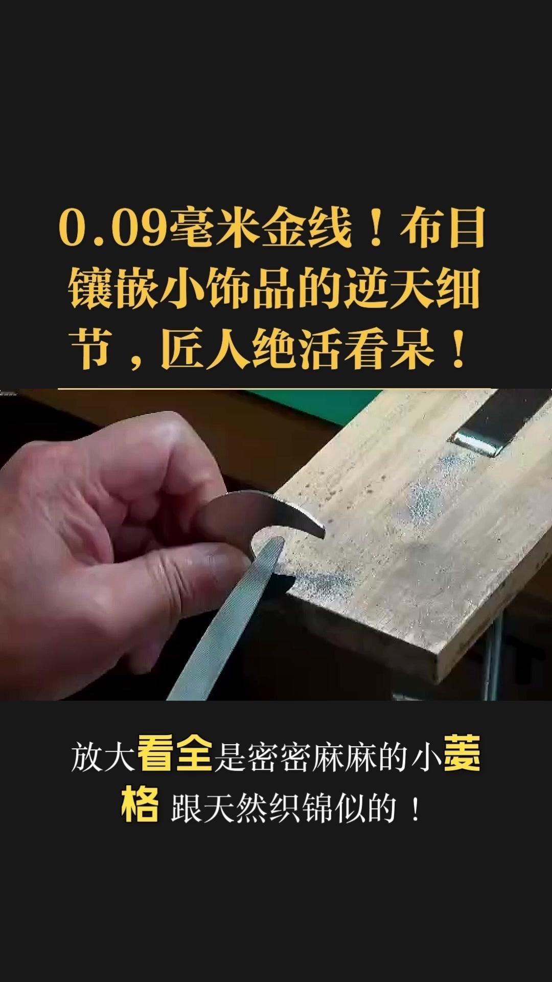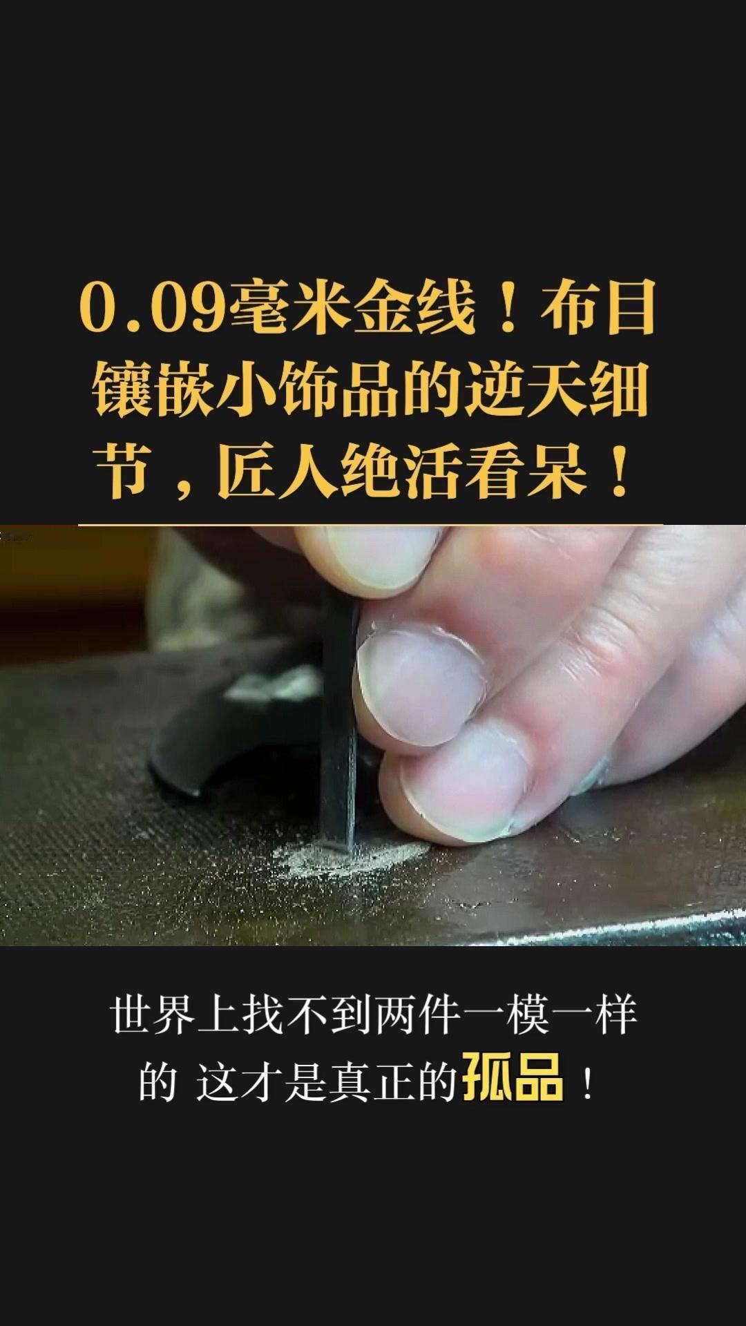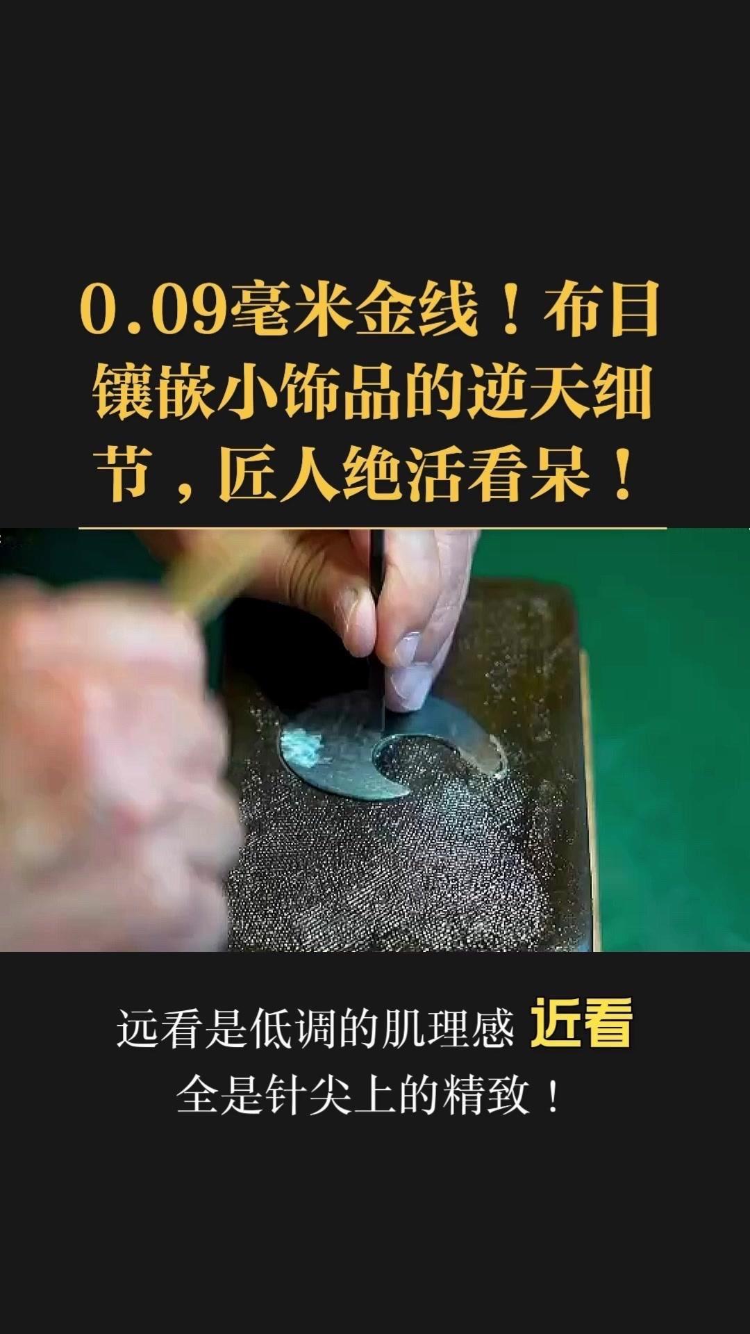 0.09毫米金线比头发丝还细3倍,老匠人左手捏线、右手拿微型锤,屏息凝神将金线嵌进布目纹路里,转弯处弧度丝滑如流水,无折痕,接头严丝合缝,显微镜下都找不到缝隙。 铁胎吊坠基底,师傅用比绣花针还细的簪子,在铁片1毫米内凿出6道细密纹路,横竖交叉织成布目,放大看像天然织锦的小菱格。这力道需稳如泰山,多凿半分就破,少凿半分锁不住金线,没15年功底不敢上手。 铁胎经氧化处理,变成温润的雾面黑色,0.09毫米金线在其中闪着细碎的光,远看低调有肌理感,近看全是针尖上的精致。每道布木纹都是手工雕刻,每段金线都是手工镶嵌,世界上没有两件一模一样的,这才是真正的孤品。