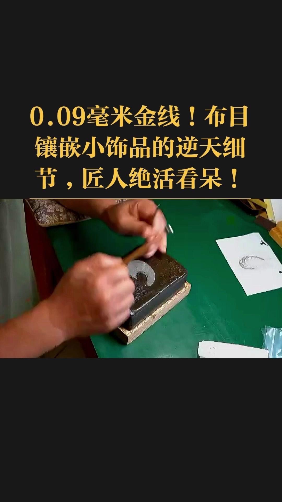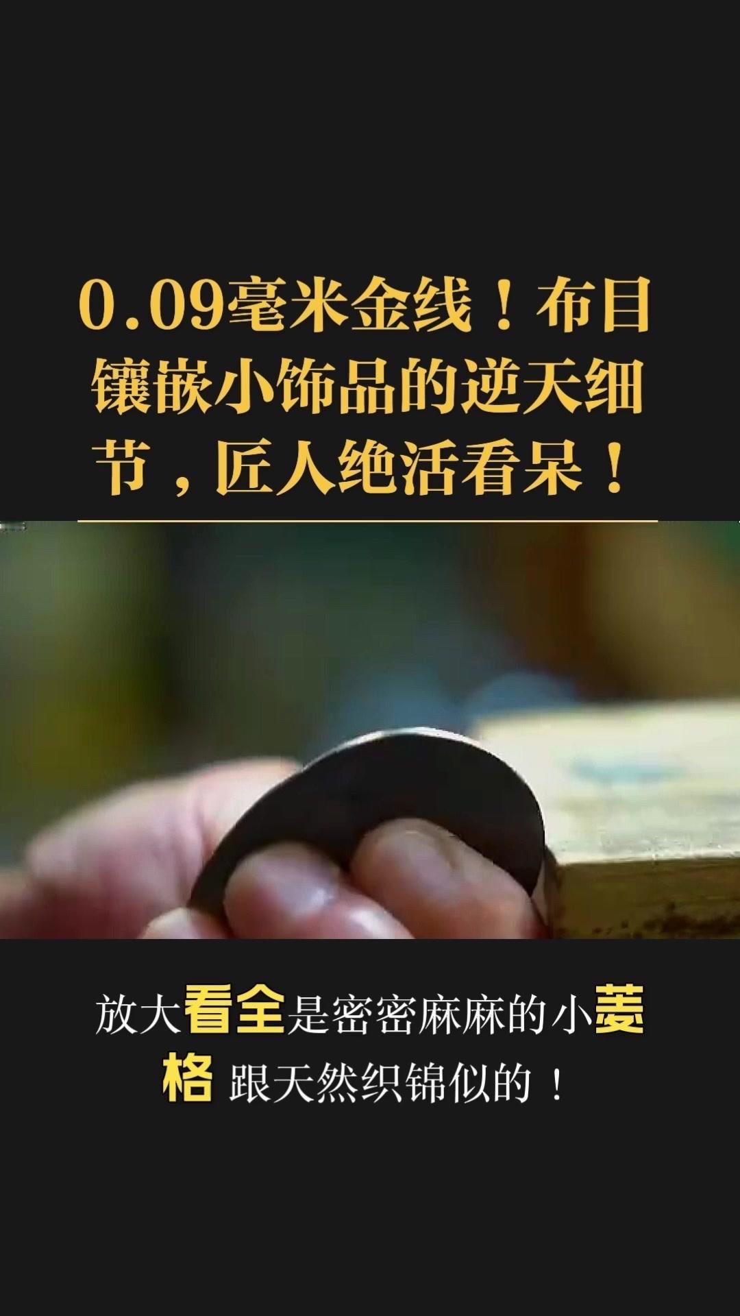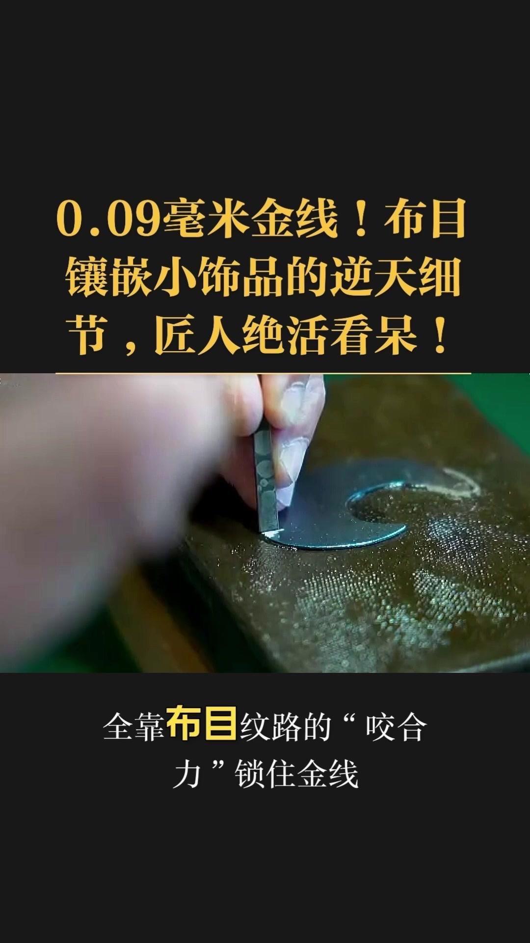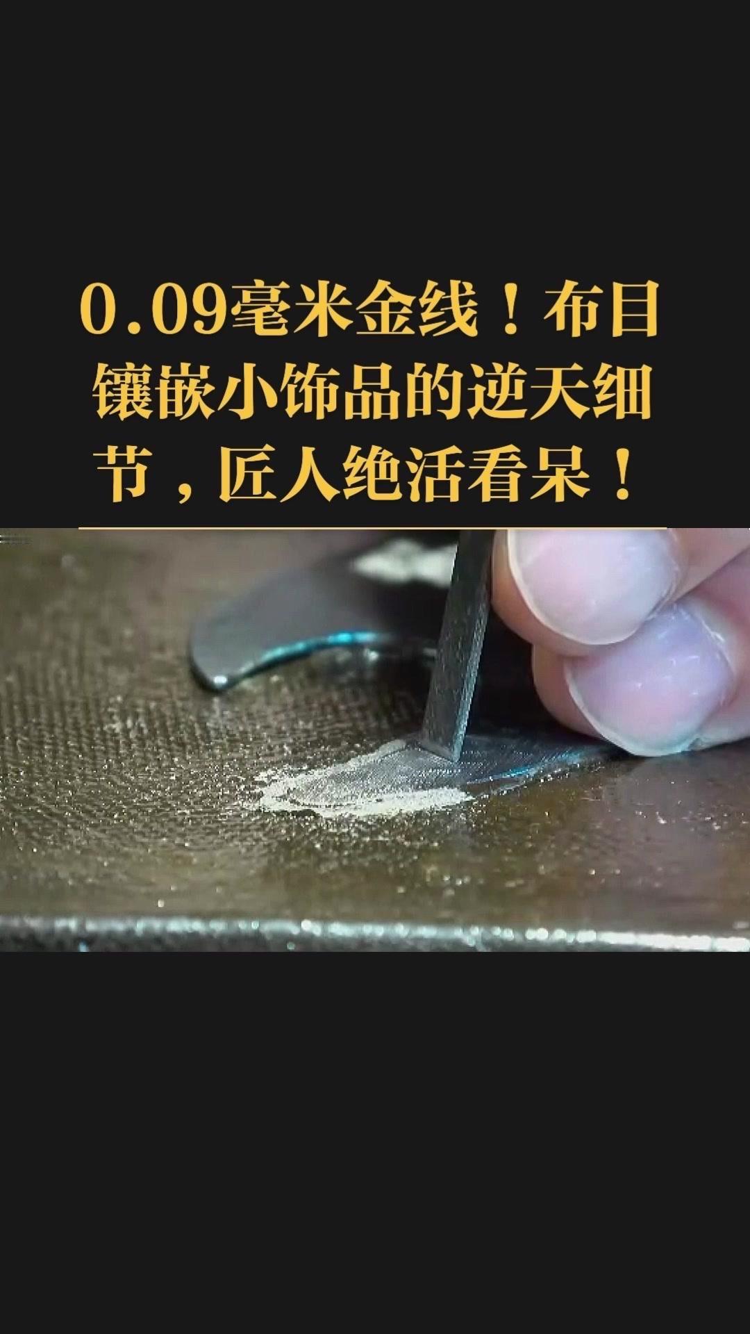 0.09毫米金线比头发丝还细3倍,老匠人左手捏线、右手拿微型锤,屏息凝神将金线嵌进布目纹路里,转弯处弧度丝滑如流水,无折痕,接头严丝合缝,显微镜下都找不到缝隙。 铁胎吊坠基底,师傅用比绣花针还细的簪子,在铁片1毫米内凿出6道细密纹路,横竖交叉织成布目,放大看像天然织锦的小菱格。这力道需稳如泰山,多凿半分就破,少凿半分锁不住金线,没15年功底不敢上手。 铁胎经氧化处理,变成温润的雾面黑色,0.09毫米金线在其中闪着细碎的光,远看低调有肌理感,近看全是针尖上的精致。每道布木纹都是手工雕刻,每段金线都是手工镶嵌,世界上没有两件一模一样的,这才是真正的孤品。
