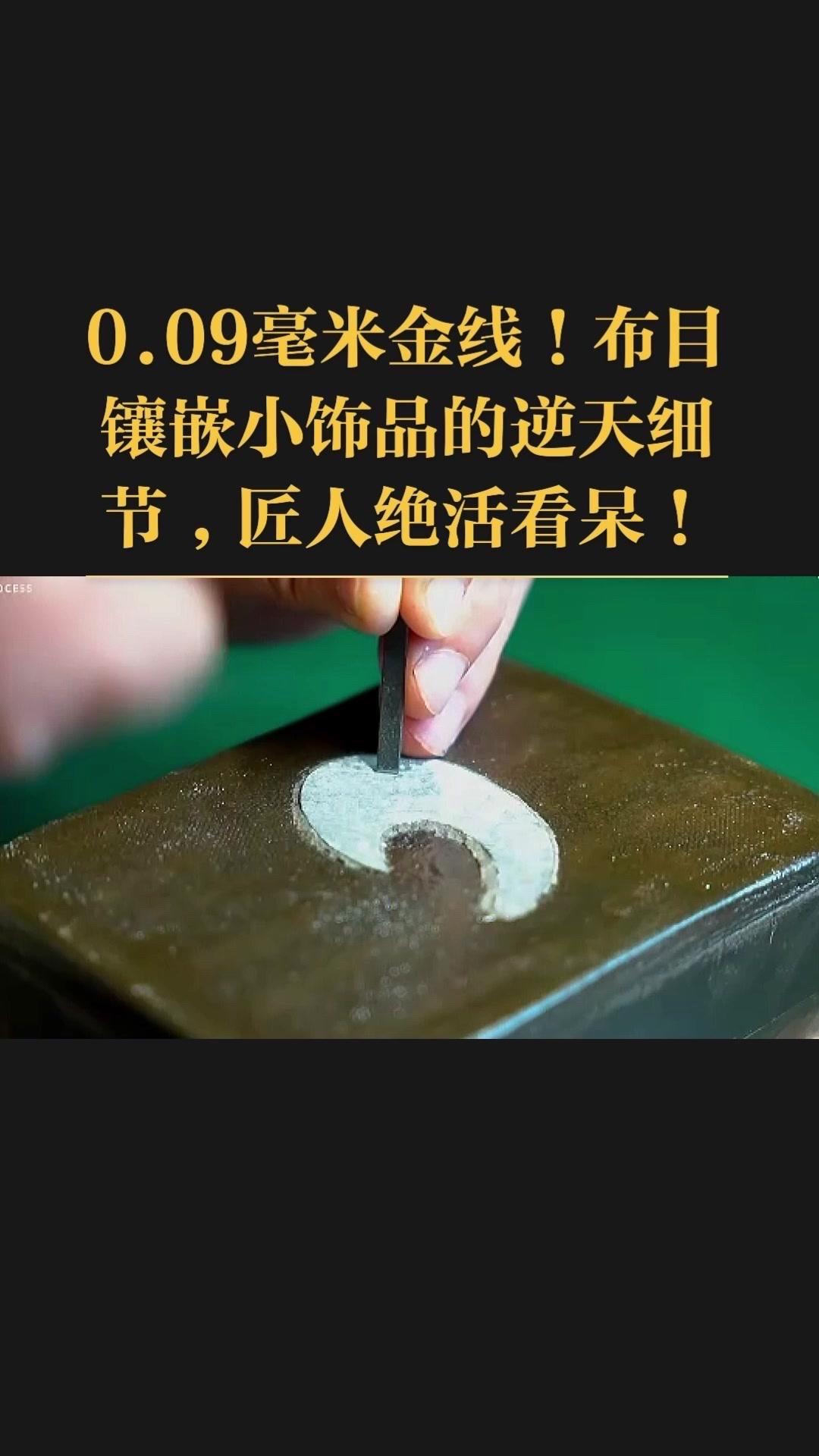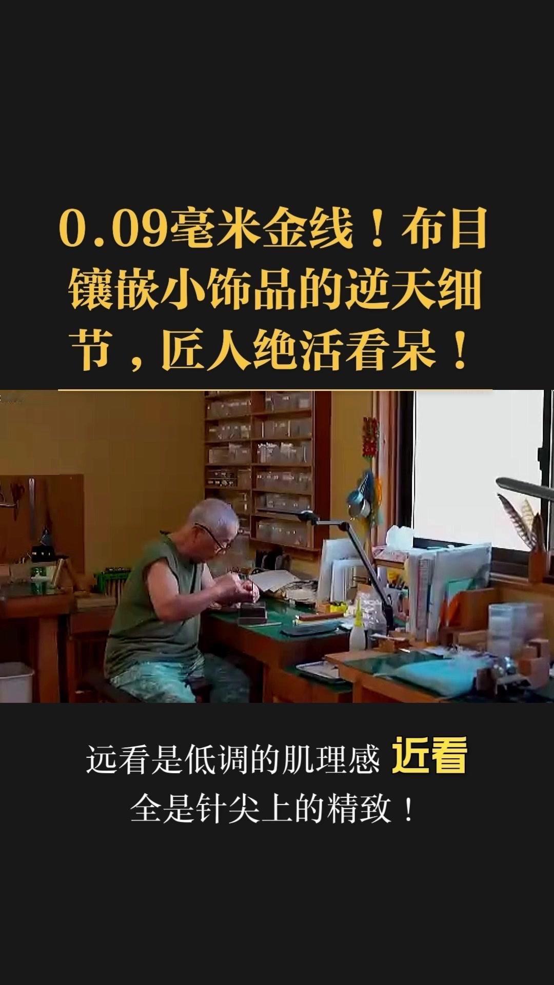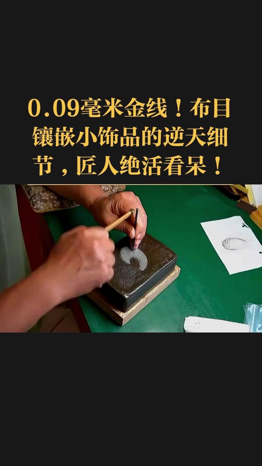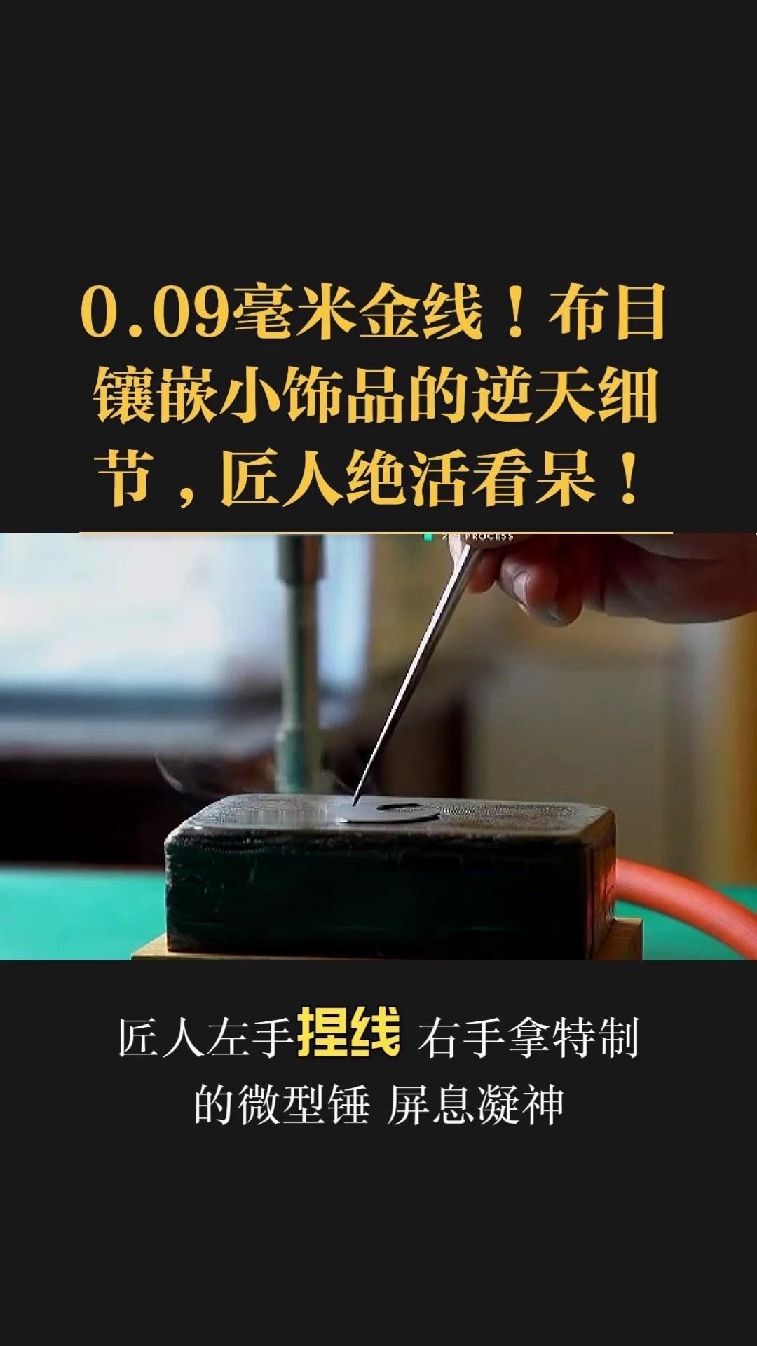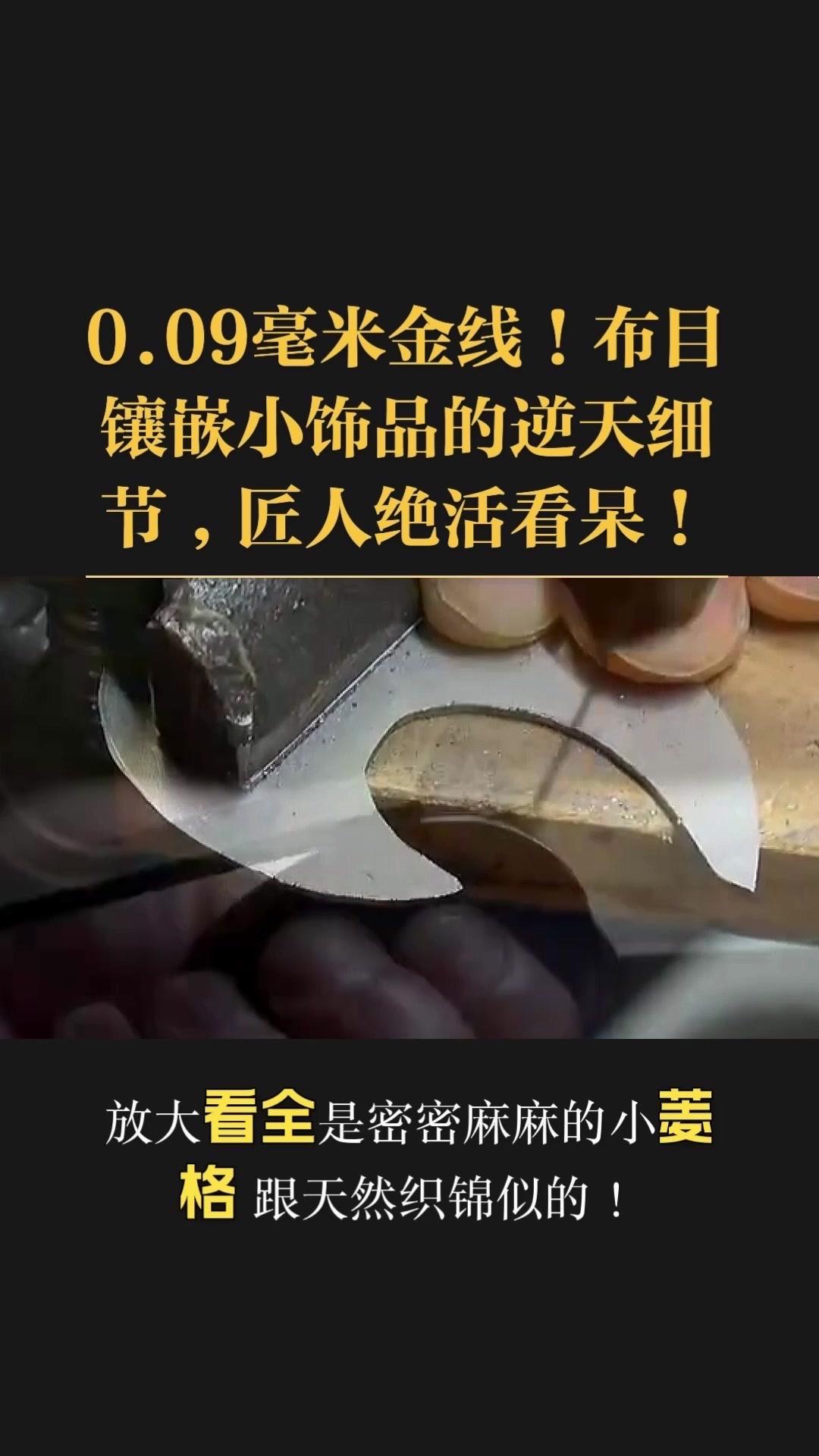 0.09毫米金线比头发丝还细3倍,老匠人左手捏线、右手拿微型锤,屏息凝神将金线嵌进布目纹路里,转弯处弧度丝滑如流水,无折痕,接头严丝合缝,显微镜下都找不到缝隙。 铁胎吊坠基底,师傅用比绣花针还细的簪子,在铁片1毫米内凿出6道细密纹路,横竖交叉织成布目,放大看像天然织锦的小菱格。这力道需稳如泰山,多凿半分就破,少凿半分锁不住金线,没15年功底不敢上手。 铁胎经氧化处理,变成温润的雾面黑色,0.09毫米金线在其中闪着细碎的光,远看低调有肌理感,近看全是针尖上的精致。每道布木纹都是手工雕刻,每段金线都是手工镶嵌,世界上没有两件一模一样的,这才是真正的孤品。