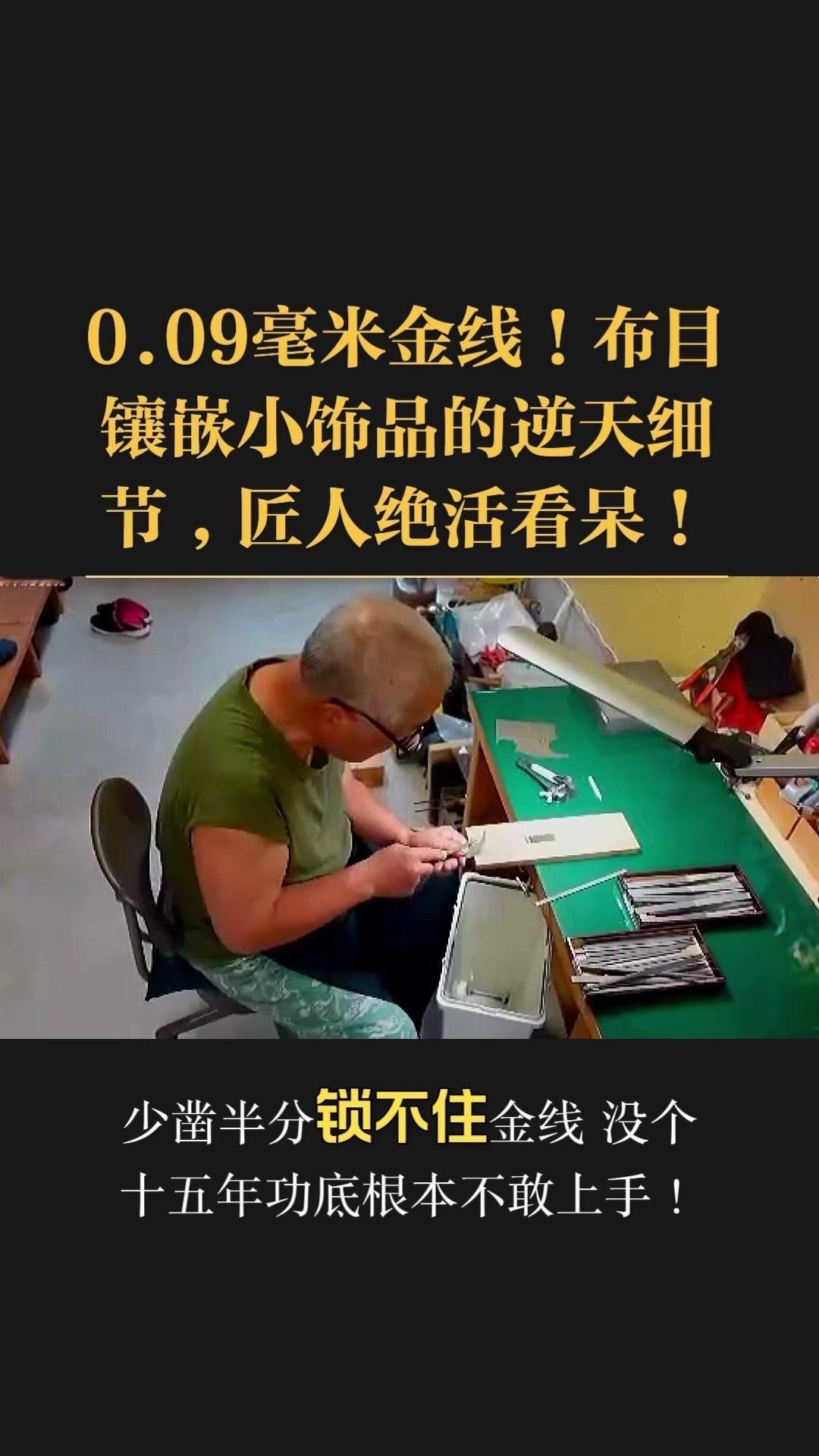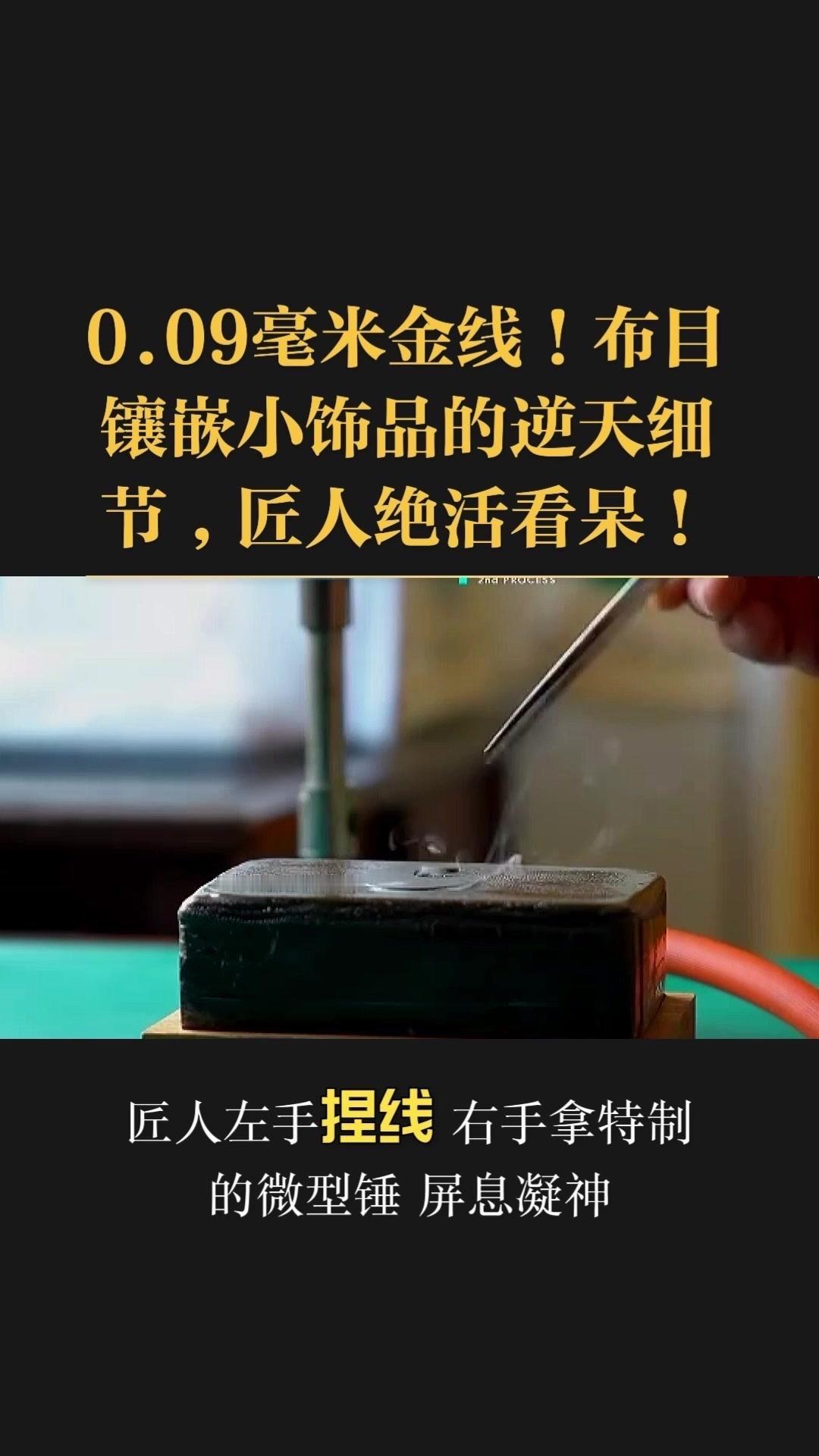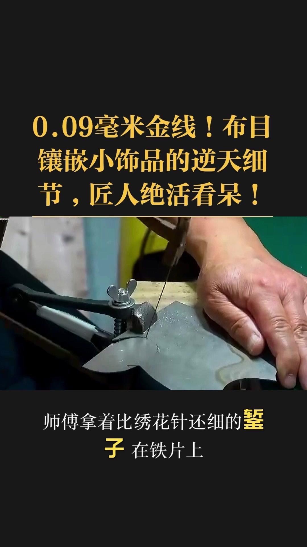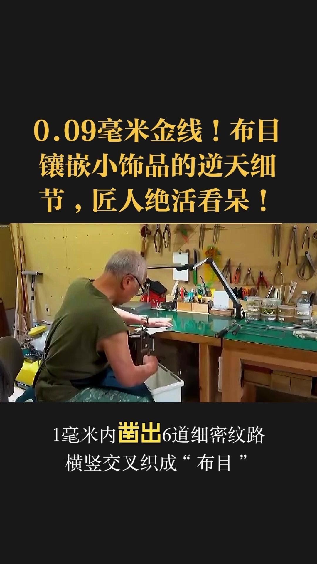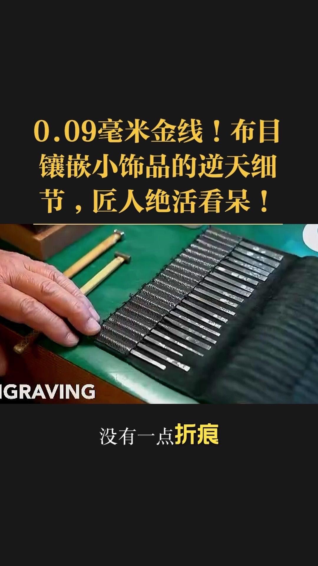 0.09毫米金线比头发丝还细3倍,老匠人左手捏线、右手拿微型锤,屏息凝神将金线嵌进布目纹路里,转弯处弧度丝滑如流水,无折痕,接头严丝合缝,显微镜下都找不到缝隙。 铁胎吊坠基底,师傅用比绣花针还细的簪子,在铁片1毫米内凿出6道细密纹路,横竖交叉织成布目,放大看像天然织锦的小菱格。这力道需稳如泰山,多凿半分就破,少凿半分锁不住金线,没15年功底不敢上手。 铁胎经氧化处理,变成温润的雾面黑色,0.09毫米金线在其中闪着细碎的光,远看低调有肌理感,近看全是针尖上的精致。每道布木纹都是手工雕刻,每段金线都是手工镶嵌,世界上没有两件一模一样的,这才是真正的孤品。