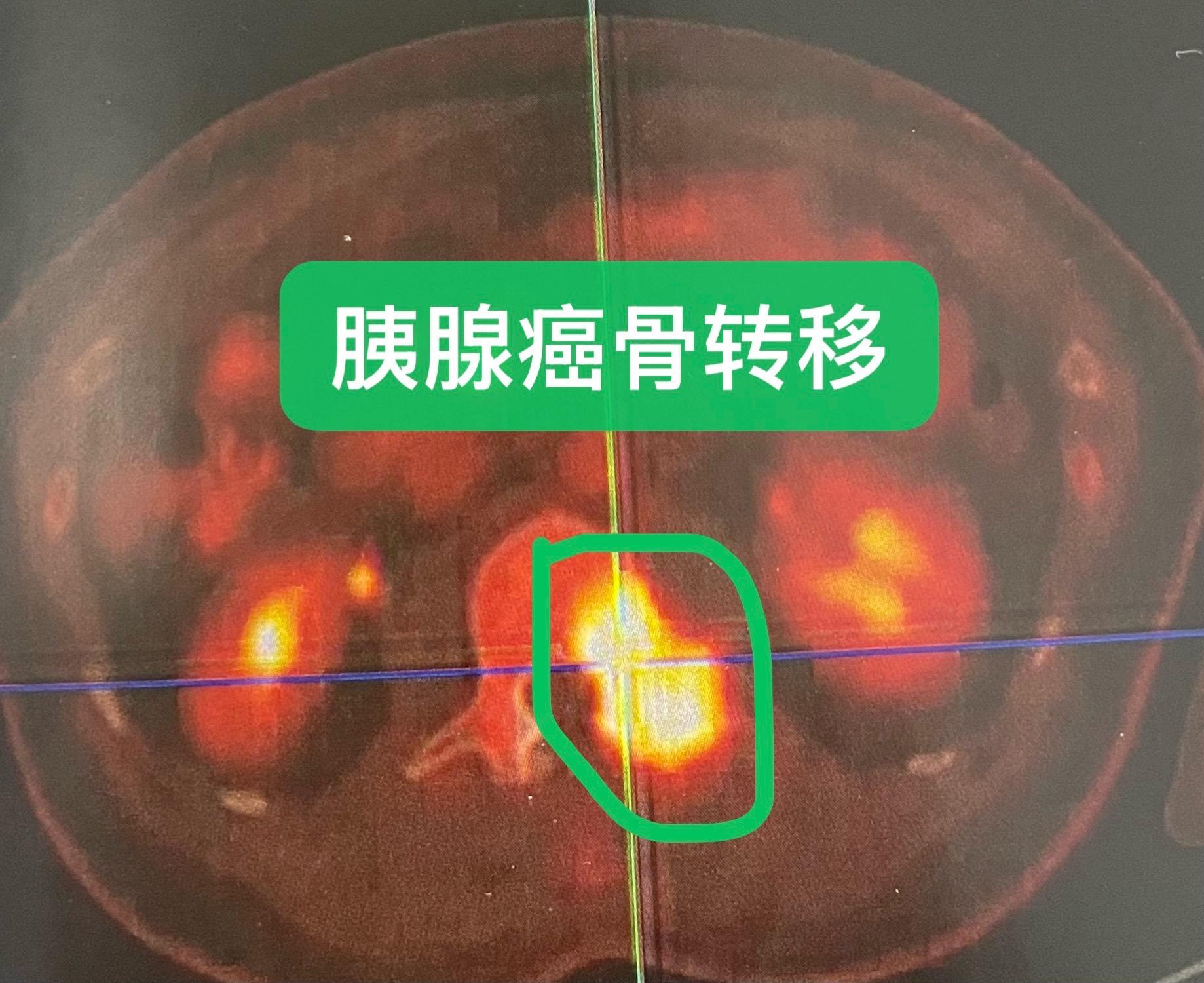 胰腺癌多发转移的协同治疗。患者完善检查后,颅骨区域组织行病理活检:转移性胰腺腺泡癌!PETCT显示胰腺癌颅骨,脊柱,肝脏等区域多发转移!采取基因检测,镇痛脱水!考虑到AG化疗的效果有限,故采取协同治疗方案:关键区域精准放疗,同时激发免疫细胞治疗效应,抗血管生成抑制血管新生,抑制肿瘤生长,温和化疗杀伤肿瘤,综合协同治疗方案,希望发挥1➕1大于2的作用!