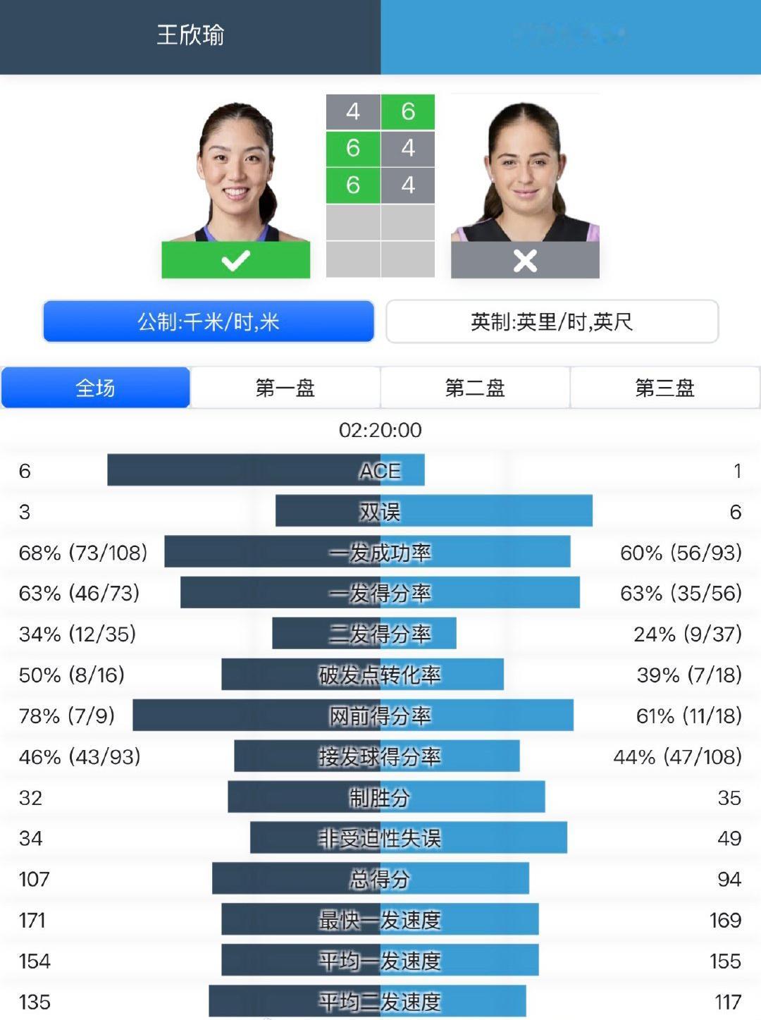 王欣瑜vs奥斯塔彭科中国金花创历史!2026澳网女单第二轮,王欣瑜历经2小时19分钟三盘苦战,以4-6、6-4、6-4逆转24号种子、前法网冠军奥斯塔彭科,职业生涯首次晋级澳网女单32强,还达成四大满贯均闯入第三轮的成就,成为本届澳网女单中国独苗!首盘王欣瑜虽惜败,但第二盘在2-4落后时开启逆袭,连赢四局扳平大比分,决胜盘更是在多次陷入被动后稳扎稳打。面对奥斯塔彭科的暴力进攻,她轰出6记ACE,二发成功率高达90%,兑现8次破发点还挽救11个破发点,关键分上的心理素质拉满。这场胜利让王欣瑜收获约155万元奖金,即时排名升至世界第40位,接下来她将迎战13号种子诺斯科娃冲击16强。逆风翻盘的王欣瑜,用硬实力诠释了中国网球的韧性!