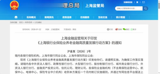 1月22日,上海市金融监管局印发《上海银行业保险业养老金融高质量发展行动方案》(下称《行动方案》)。