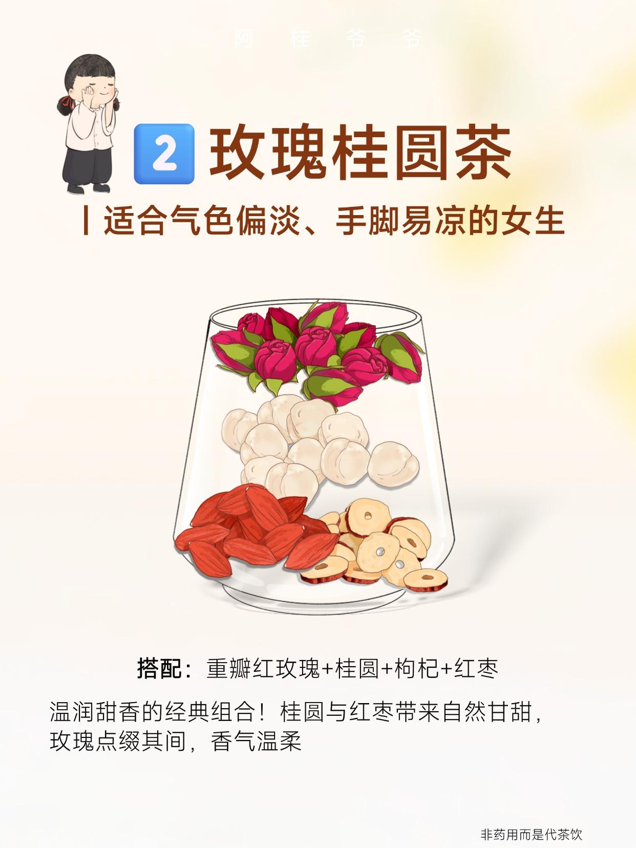 2、玫瑰桂圆茶:适合脸黄暗淡