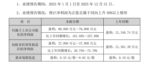 预计归属于上市公司股东的净利润为6亿元~7亿元,比上年同期增长181.05%~227.89%。