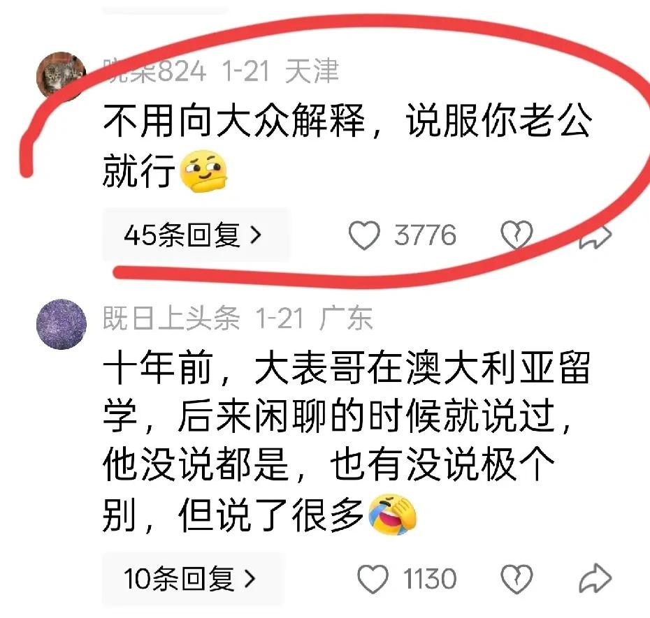 不要替一个群体说话,而是,要向自己老公证明自己的清白!这是网友的忠告!因为,在牢a之前,留学生群体的问题已经开始小范围地、悄悄地讨论!牢a只是大声讲出来! 那个群体不是都有问题,只是问题较多!
