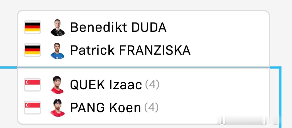 WTT常规挑战赛马斯喀特站2026 男双1/4决赛:🇨🇳林诗栋/黄友政3比0皮卡德🇫🇷/豪格🇳🇴(11-5,11-7,11-7)半决赛🆚玛纳什·沙/塔卡🇮🇳🇩🇪杜达/弗朗西斯卡3比0黄镇廷/陈颢桦🇭🇰(11-7,11-5,11-4)半决赛🆚郭勇/冯耀恩🇸🇬