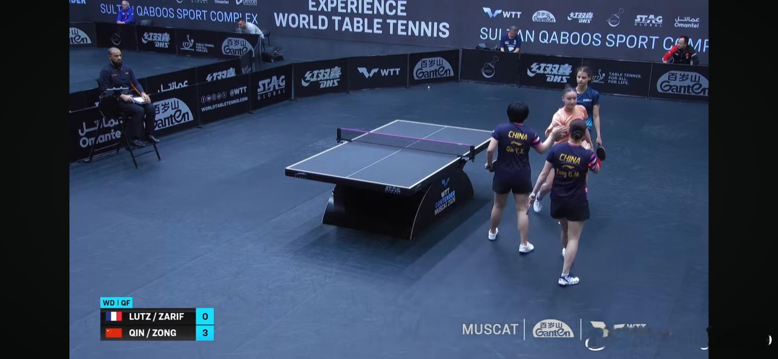 WTT常规挑战赛马斯喀特站2026 女双1/4决赛:🇨🇳覃予萱/纵歌曼3比0卢茨/扎里夫🇫🇷(11-5,11-7,11-2)🇨🇳石洵瑶/王晓彤3比0戈什/科特查🇮🇳(17-15,11-9,11-7)