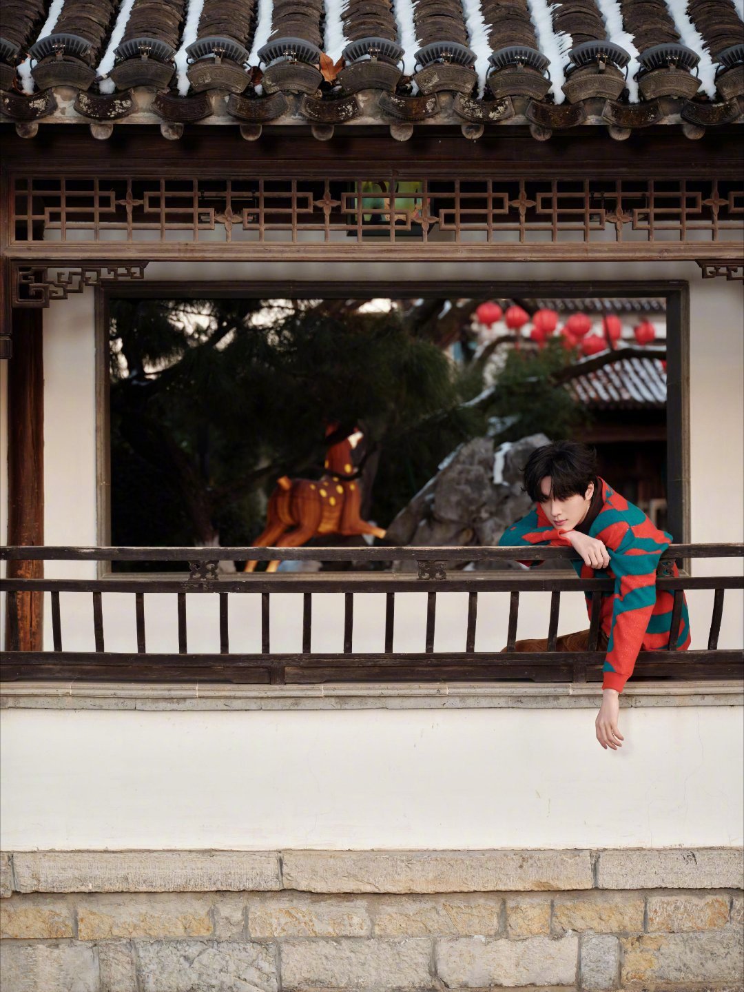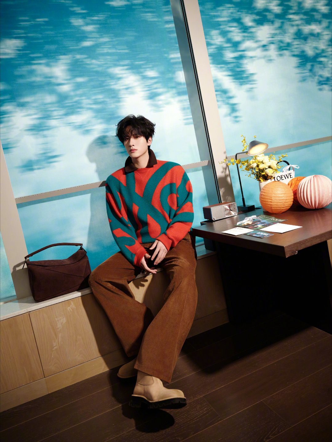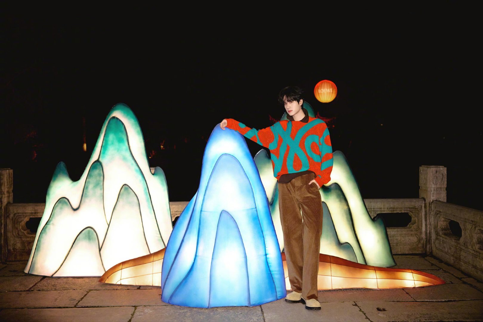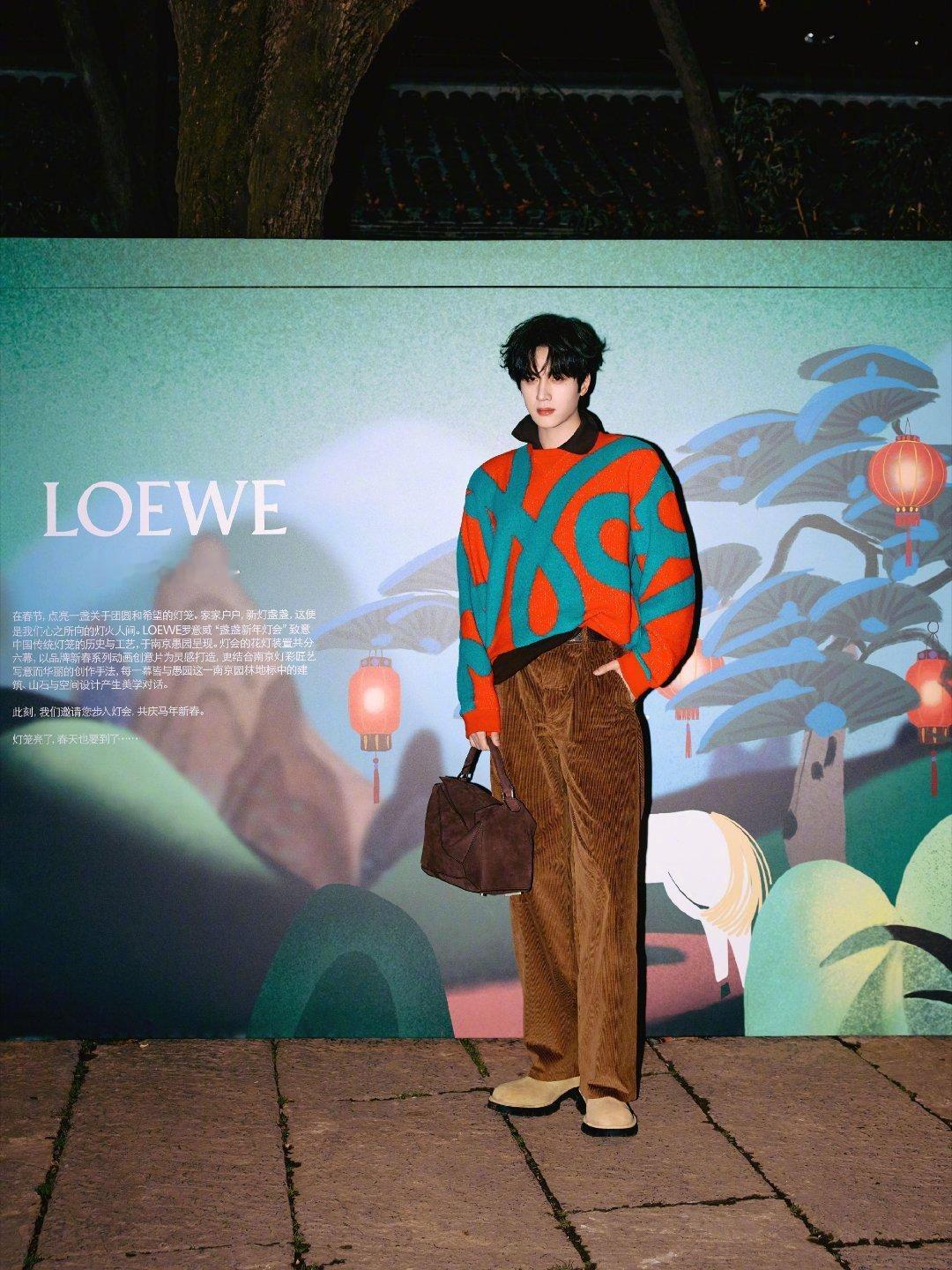 展轩亮相LOEWE罗意威举办的“盏盏新年灯会”活动。他身穿品牌2026春夏系列服