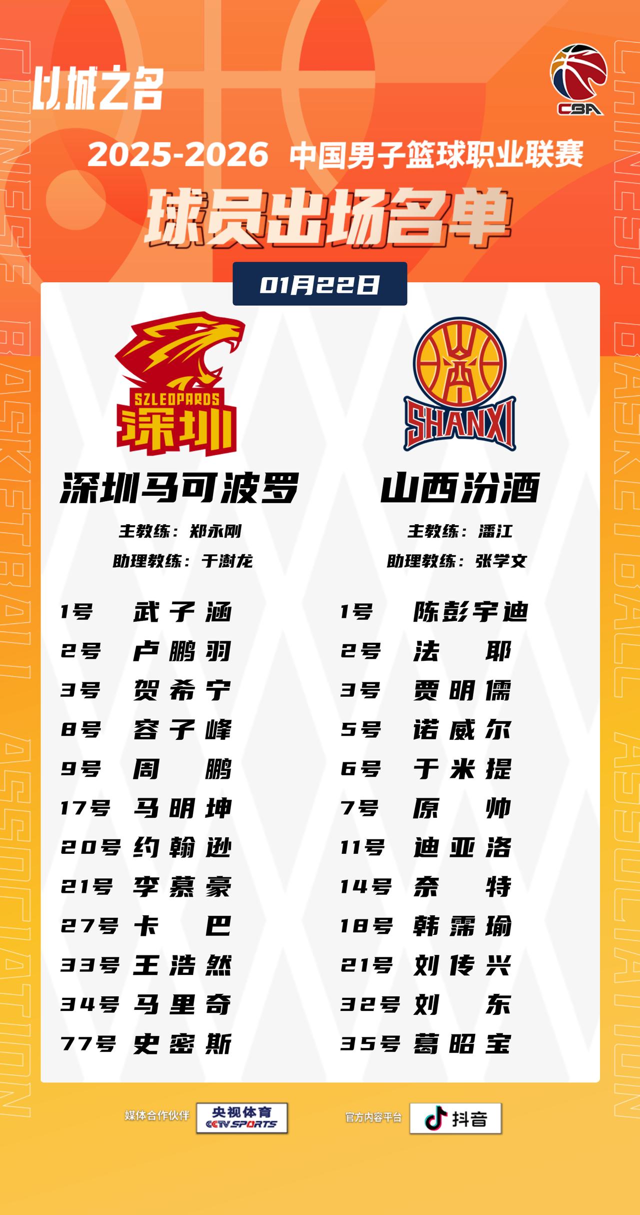 【大名单出炉】2025-2026赛季CBA联赛常规赛第十八轮今晚继续进行,3场比