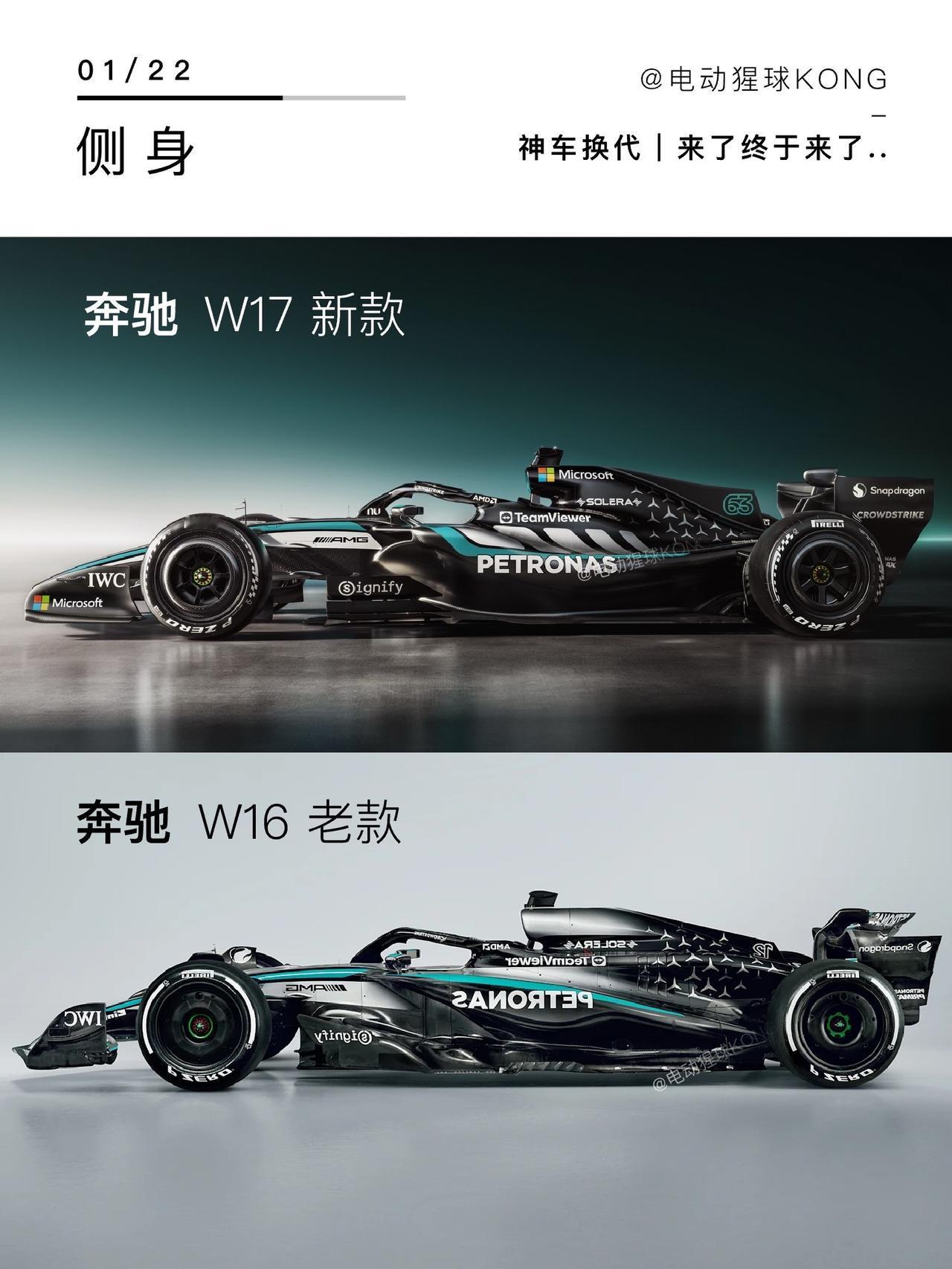 神车换代|来了终于来了..奔驰F1车队新车W17发布,继续采用银黑涂装,头顶的进气口变黑色加了新赞助,看来红色进气回归无望了,虽然都很帅,但还是觉得W16更帅一点,你们觉得呢?奔驰F1 奔驰