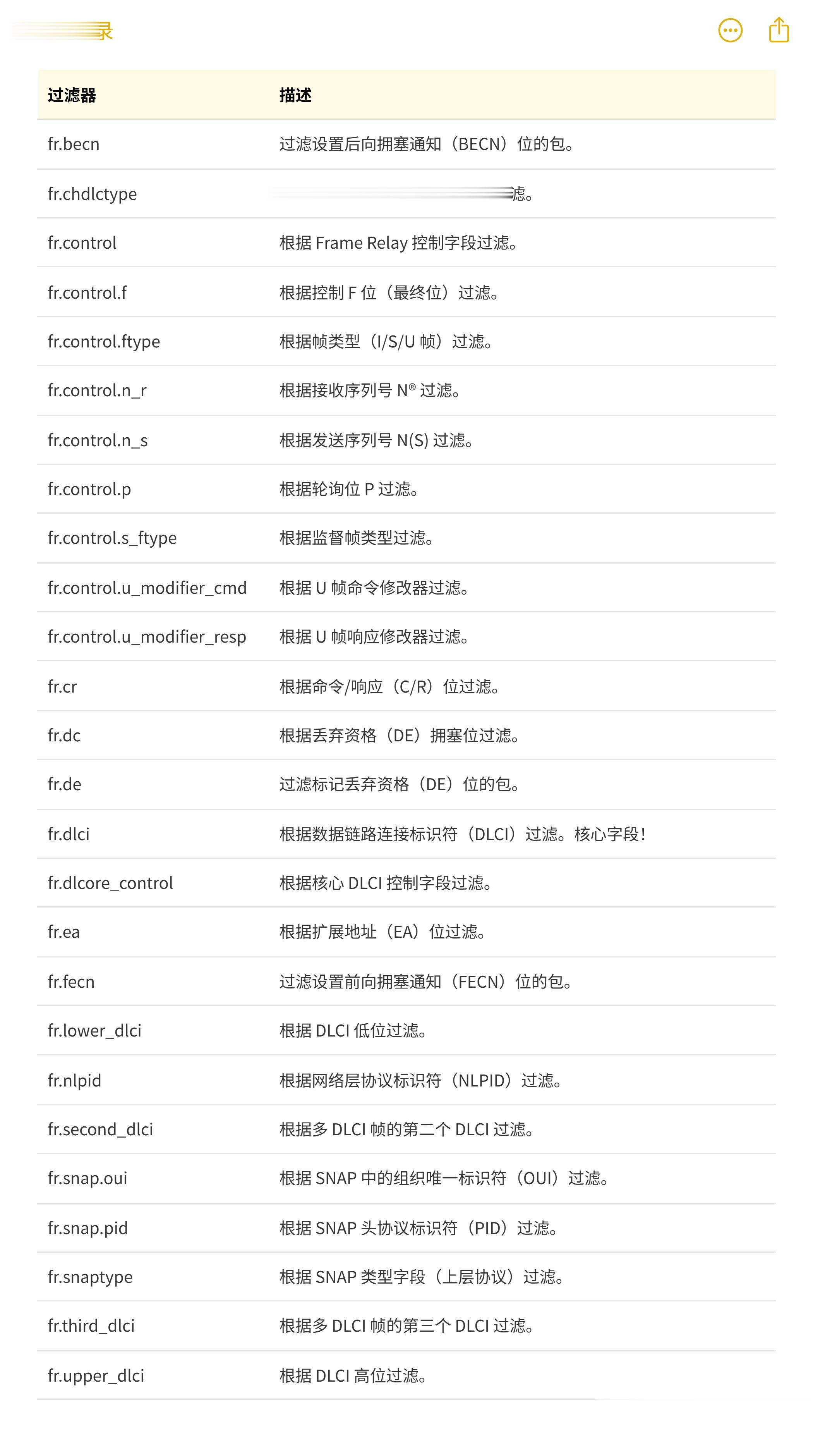 6. Frame Relay 协议过滤器Frame Relay 是旧式 WAN 协议,过滤器聚焦 DLCI、拥塞位。虽少用,但遗留系统常见。