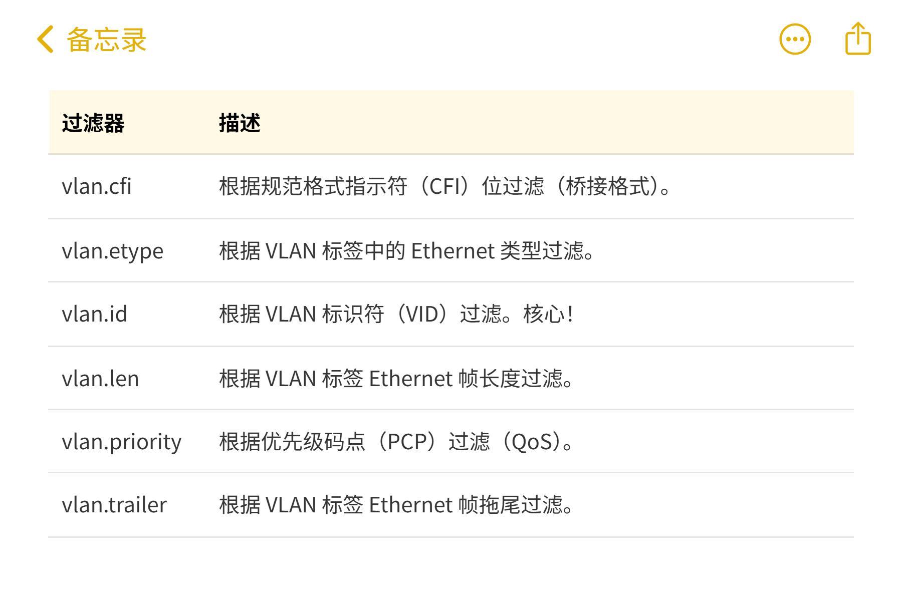 实用技巧:vlan.id == 100 – VLAN 100 流量。示例:vlan.priority == 7 – 最高优先级包。