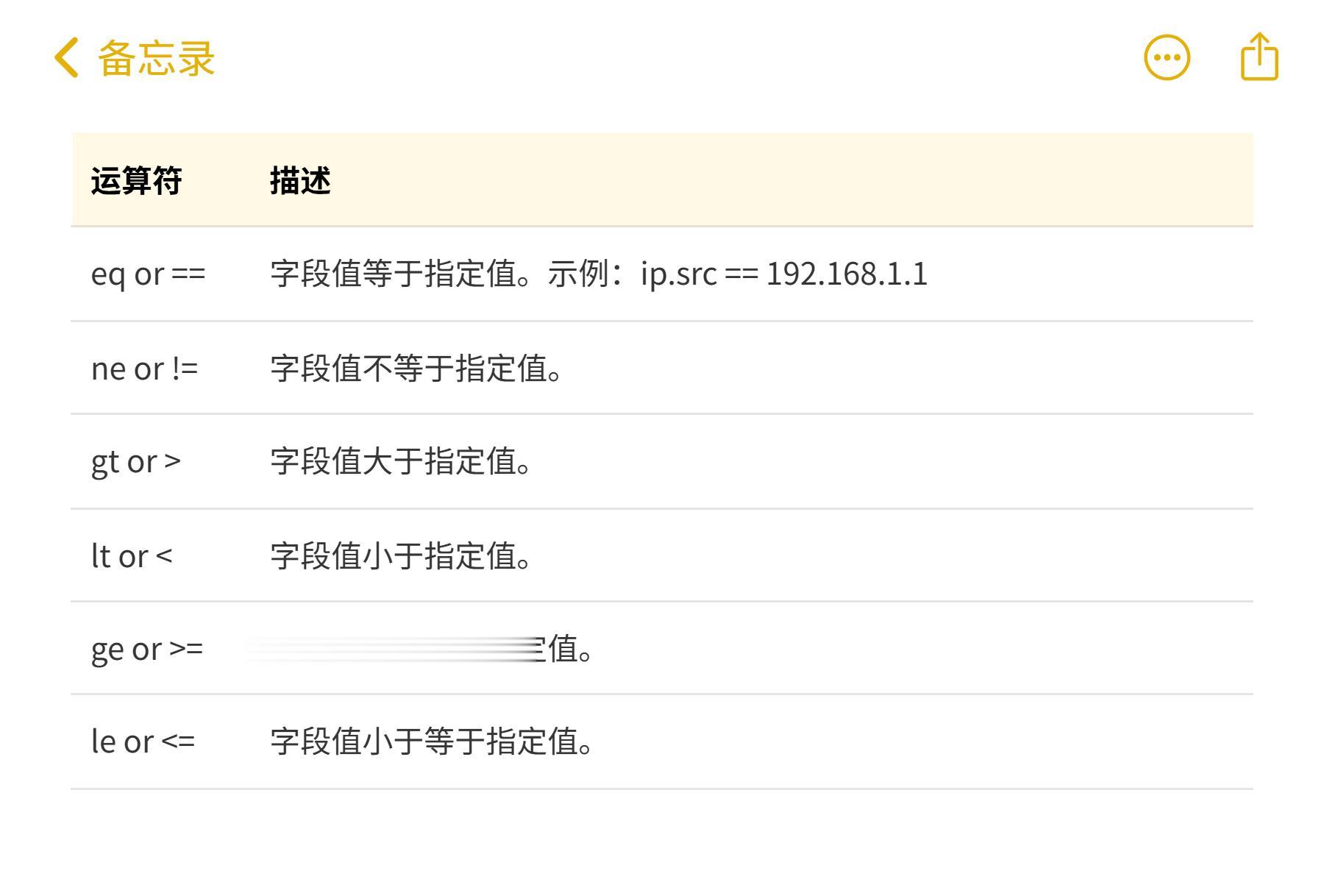 4. 过滤运算符过滤运算符是 Wireshark 语法的核心,支持数值、字符串比较。掌握这些,能构建复杂表达式。