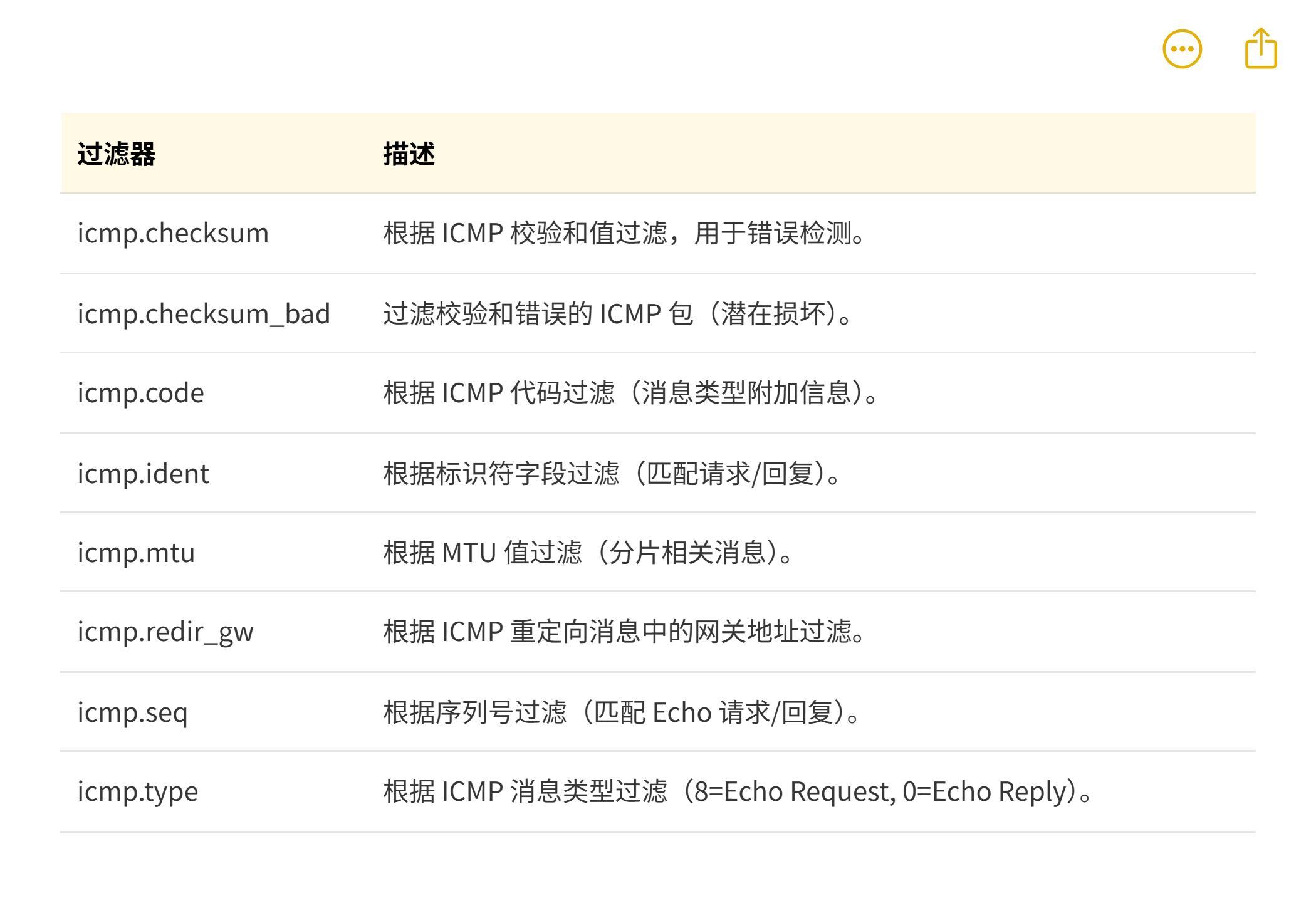 8. ICMP 协议过滤器ICMP(Internet Control Message Protocol)用于错误报告和诊断,如 ping。过滤器聚焦类型、代码、ID。