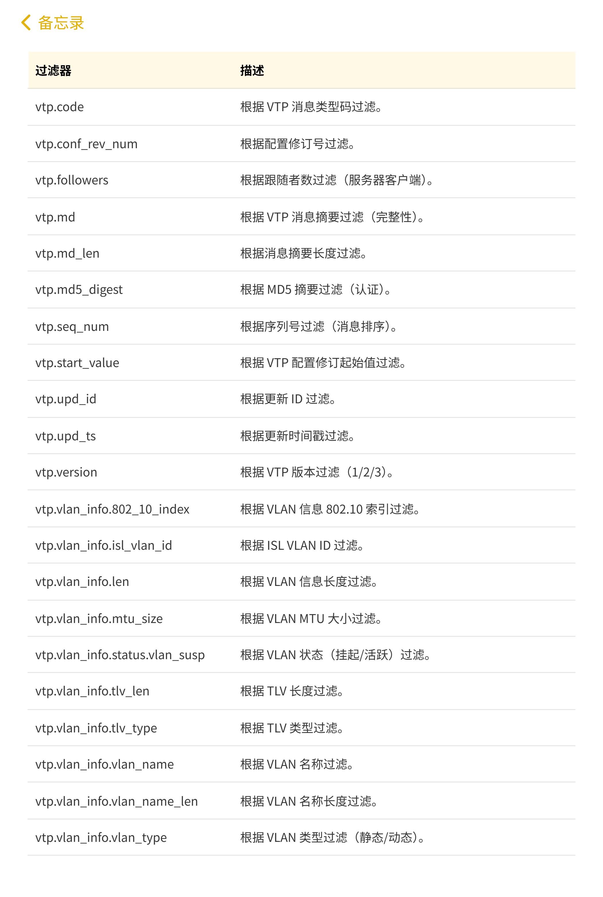18. VTP 协议过滤器VTP(VLAN Trunking Protocol)用于 Cisco 交换机 VLAN 同步,过滤器针对版本、修订、摘要。