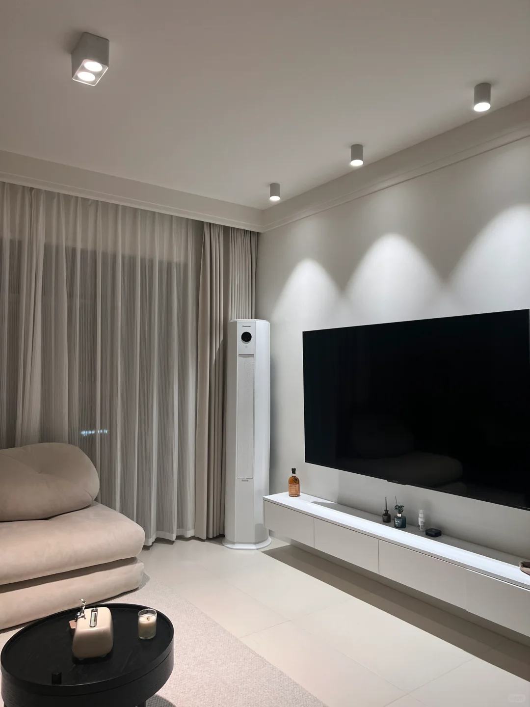 网友@安彩 的分享:家里的层高挺矮的,家里就没吊顶,又喜欢无主灯设计,直接做的明装筒灯,做水电的时候直接在棚上开槽,我自己算过,对比做吊顶,还是开槽便宜。