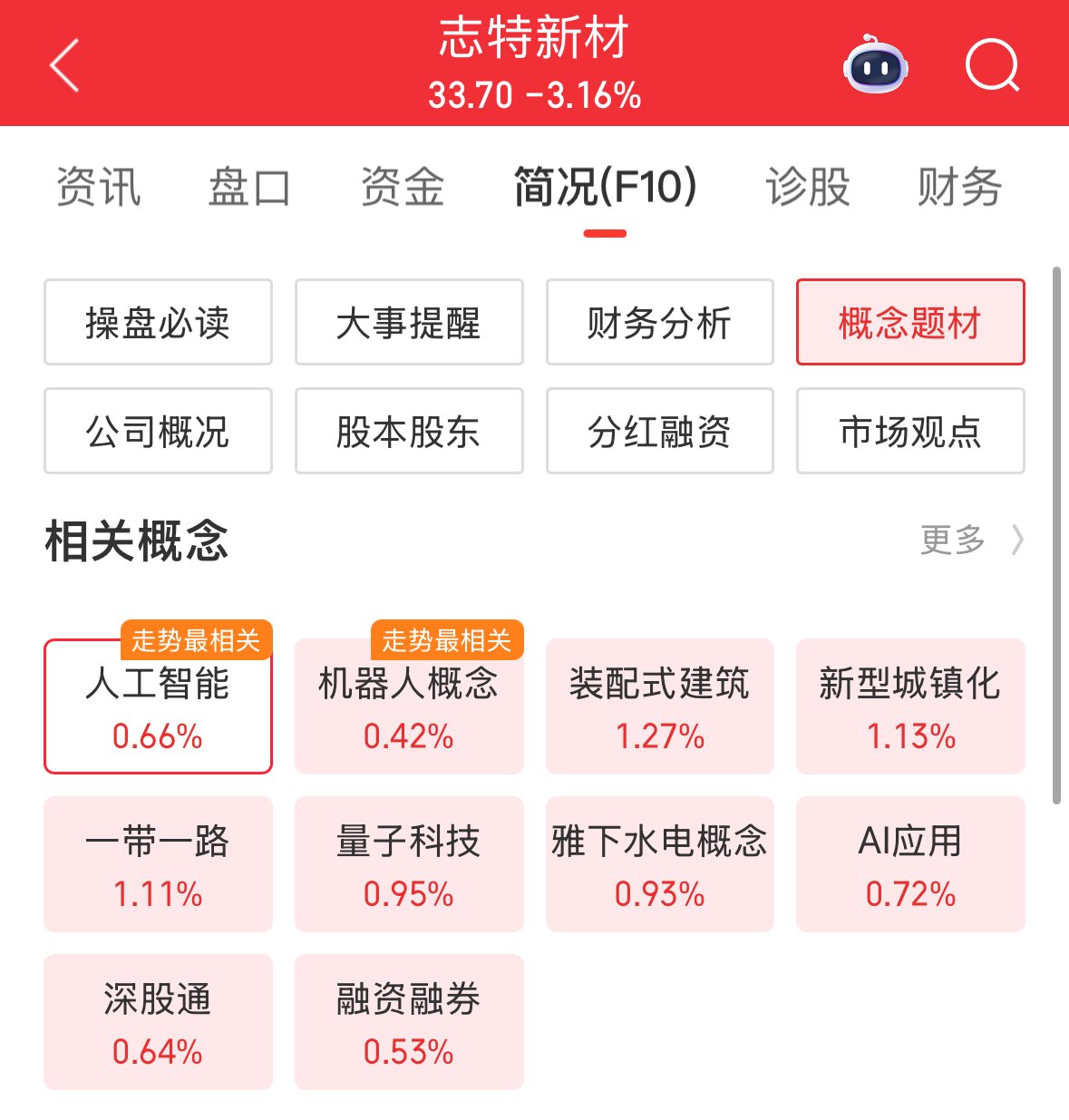 同花顺显示,志特新材被归类为人工智能、机器人、量子科技等热门概念股。