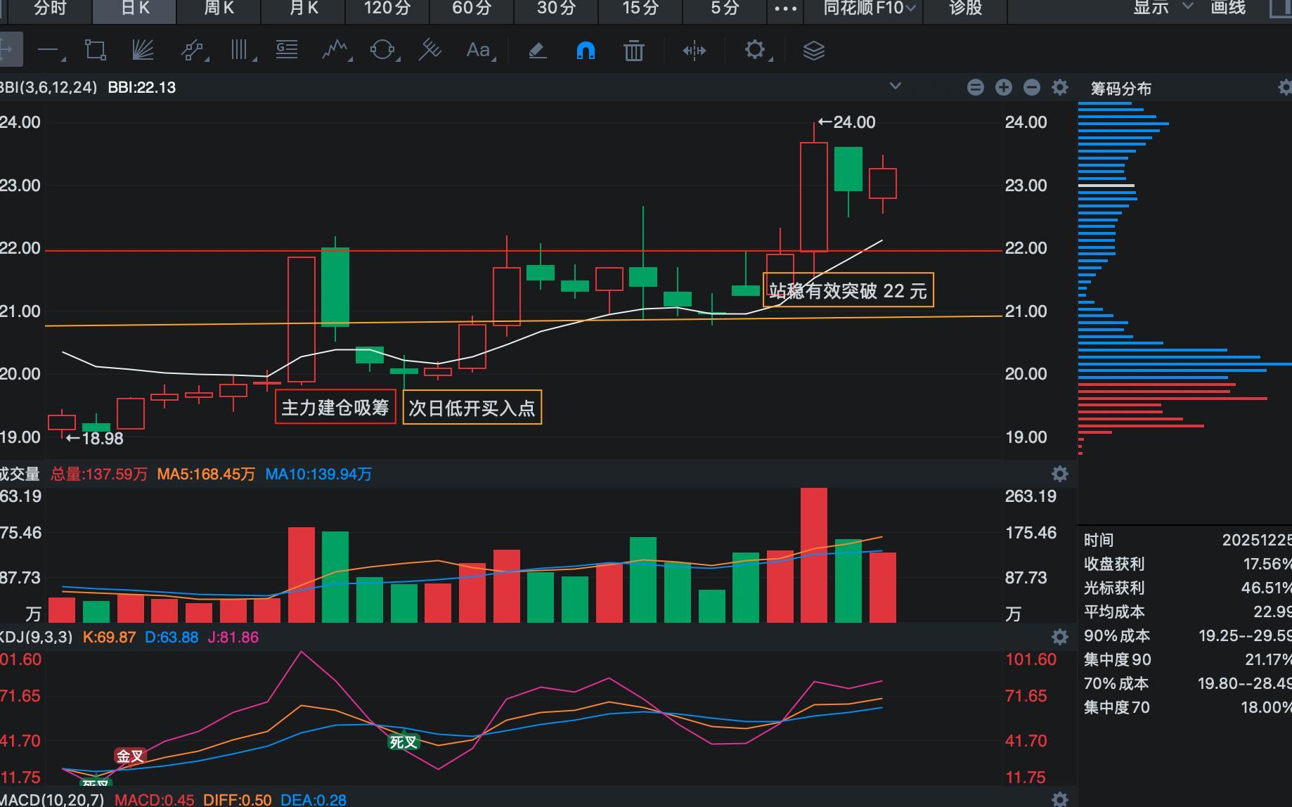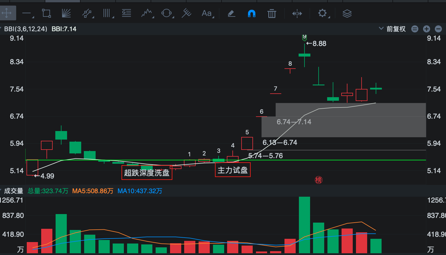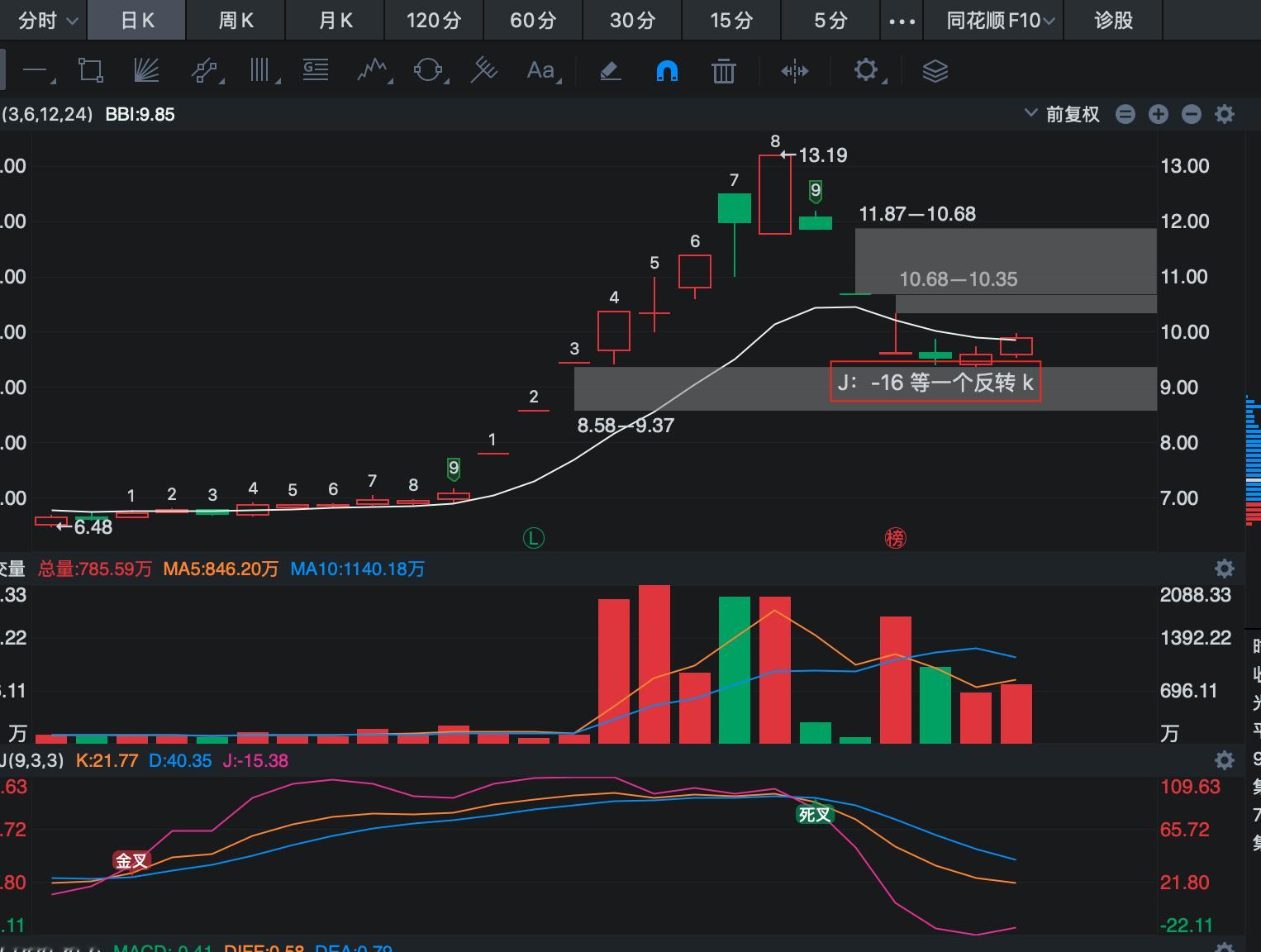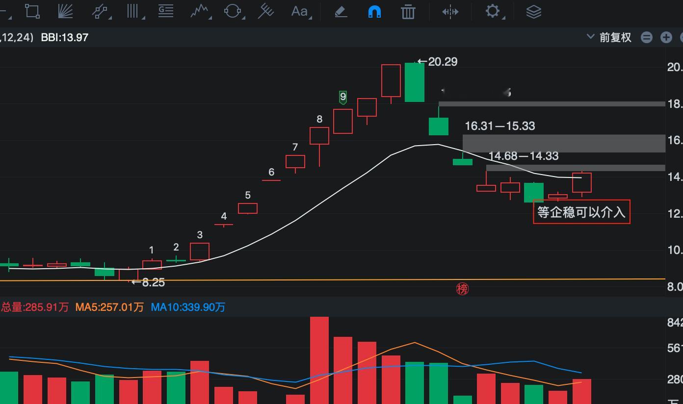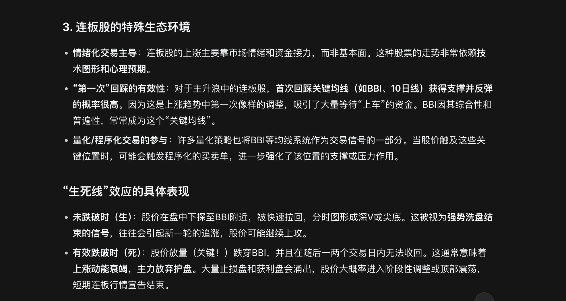 为什么连板票通常以 bbi 线作为多空的分水岭。BBI本身是一条混合均线,它通过计算不同周期简单移动平均线的平均值,综合反映了短、中、长期的持仓成本。对于连续涨停的股票:其股价远离了常规的5日、10日均线,短期均线过于陡峭,无法提供有效的支撑参考。而BBI(通常由3、6、12、24日等均线计算而成)相对平缓,能更好地代表一个更稳固、更被市场认可的中短期平均成本区。多空意义明确:股价在BBI之上,视为多头市场;股价有效跌破BBI,则可能转入空头市场。这种简单直观的二元判断,非常适合需要快速决策的短线交易。举几个例子,都是最近的比较热门的连板票。岩山、雷科、铜陵、航发、永辉、上海水电回踩企稳都可以参与一下。跌破即止损止盈。快速离场。自从开始看股票,发现真的有看不完的资讯和消息。